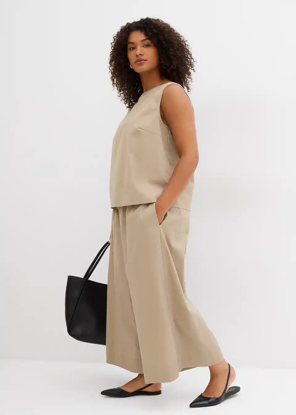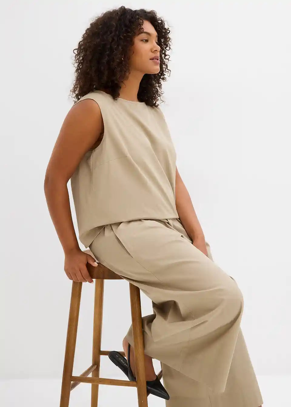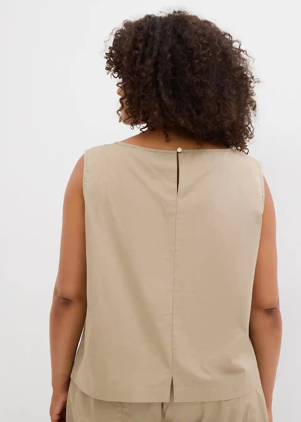 Minimalističen bluza top brez rokavov z izrezom na čoln in razporkom na hrbtni strani
