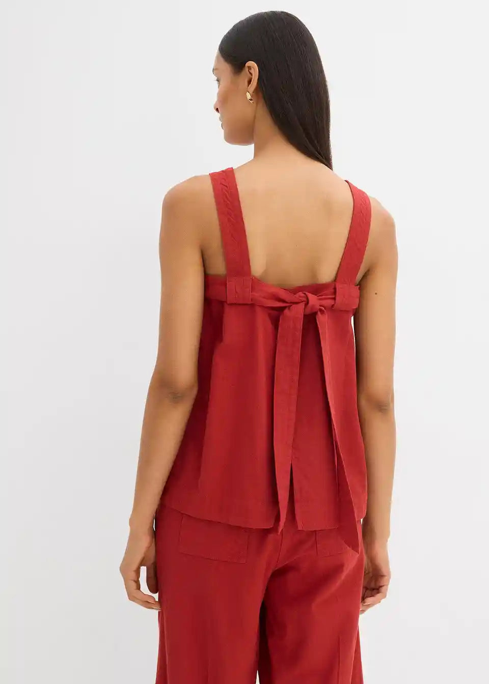 Razširjen top z oglatim izrezom in detajlom za vezanje na hrbtu