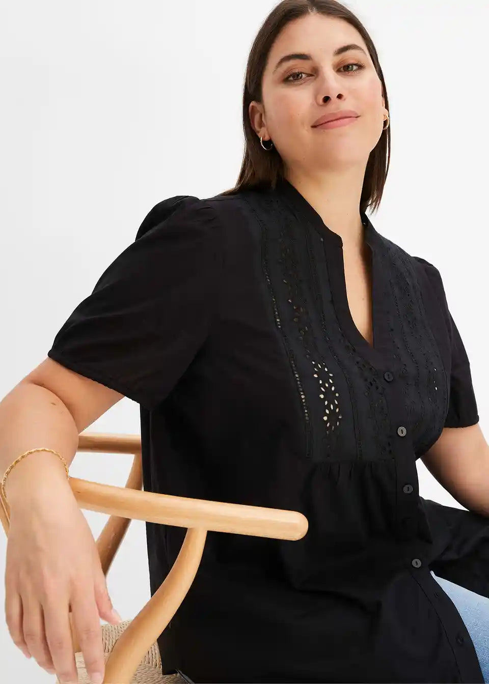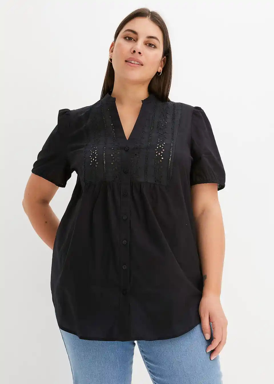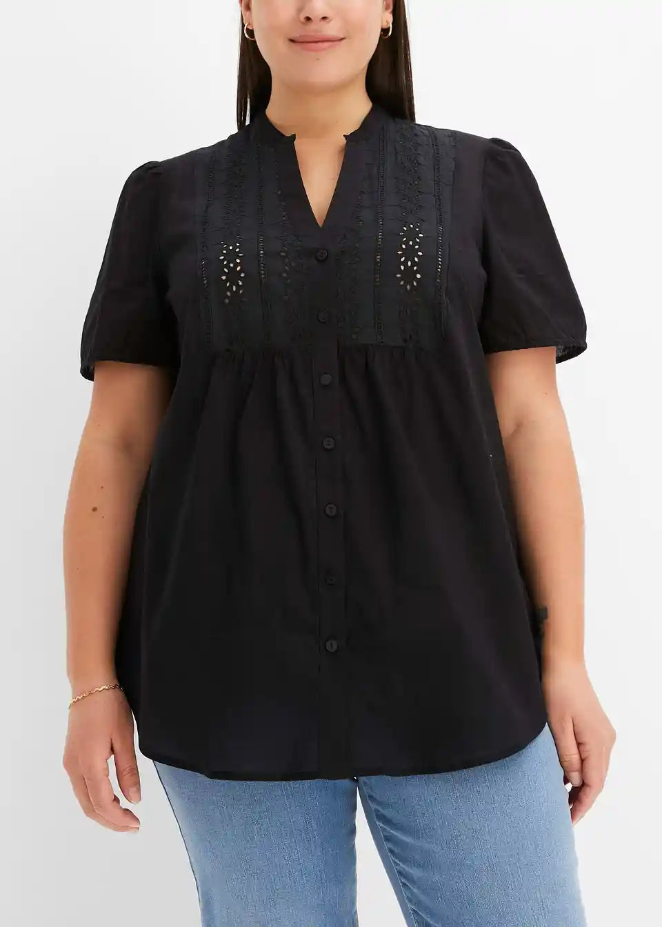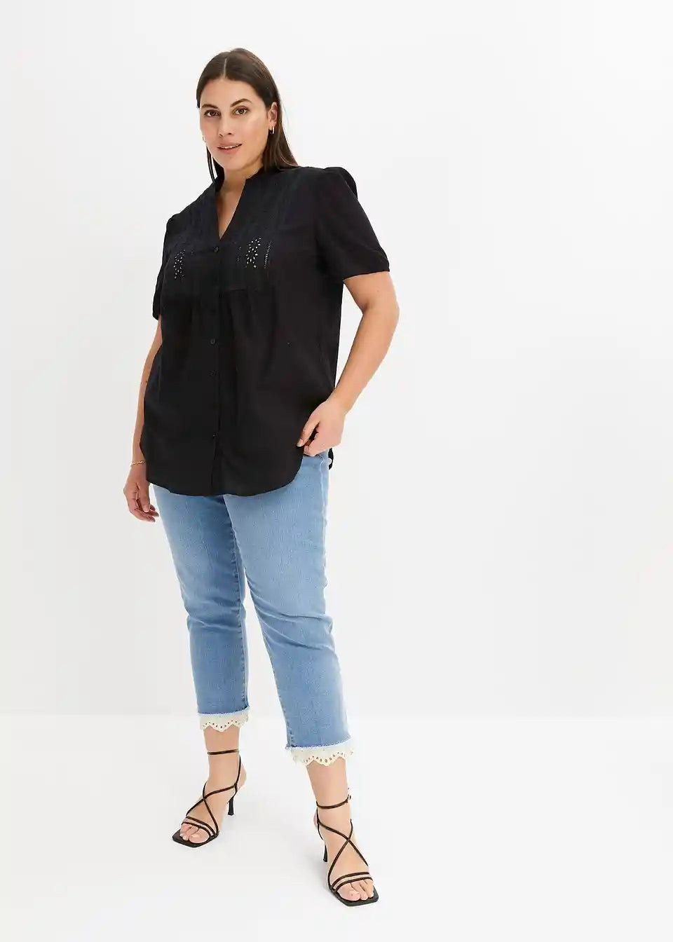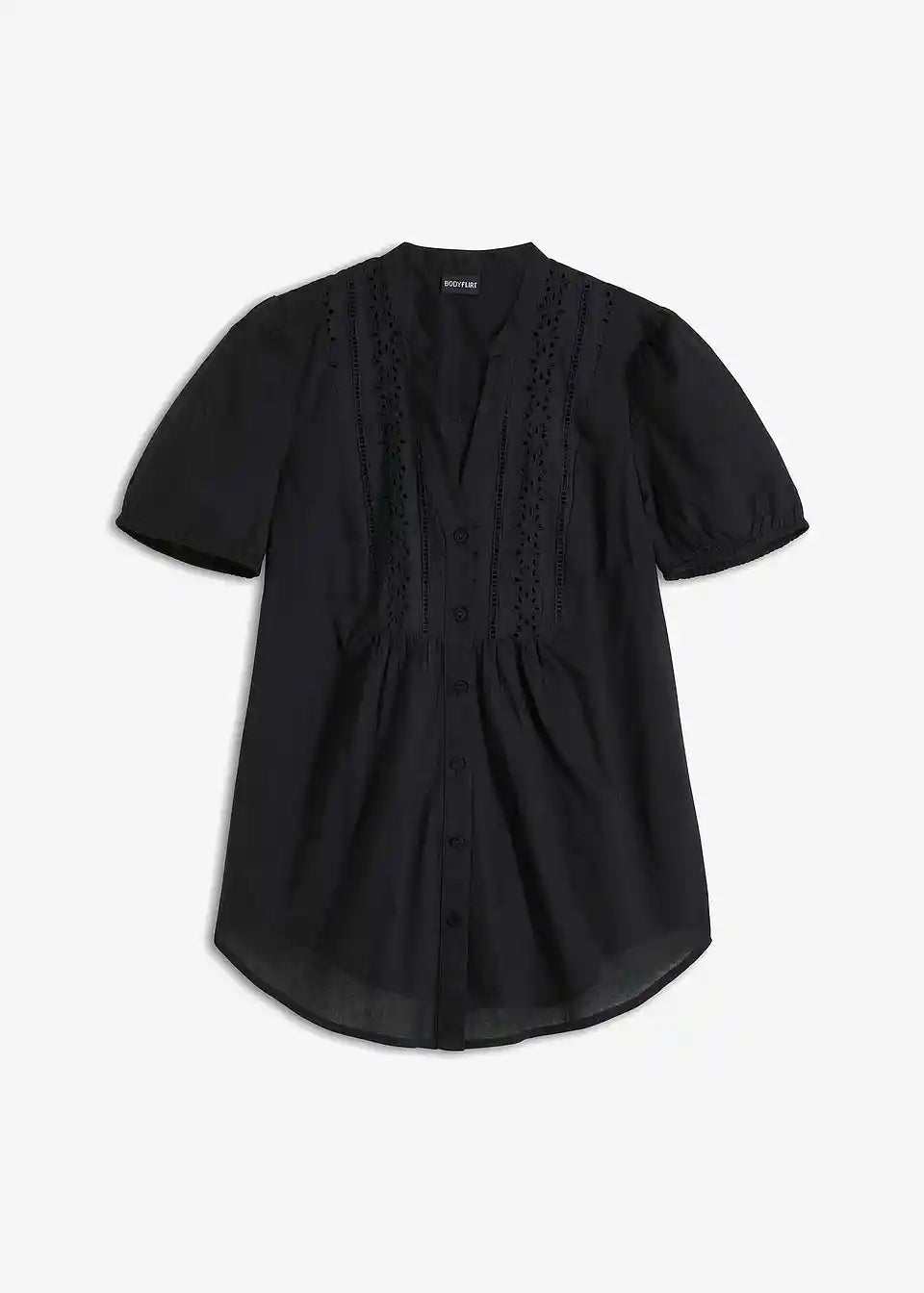 Poletna bluza z luknjičasto vezenino v zgornjem delu