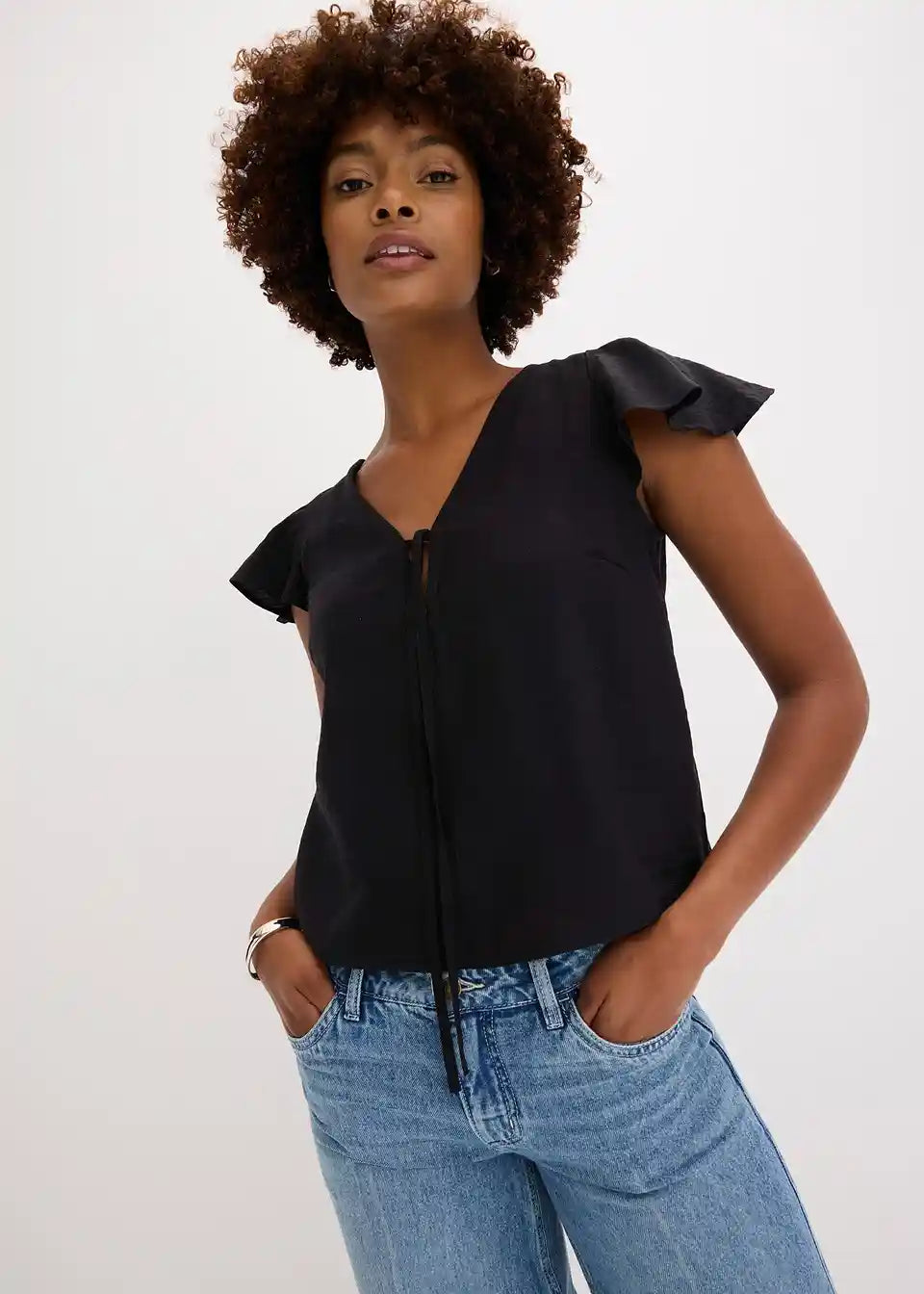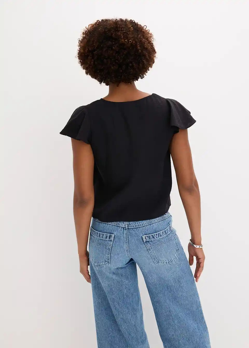Bluza z rokavi z volani v sijočem videzu