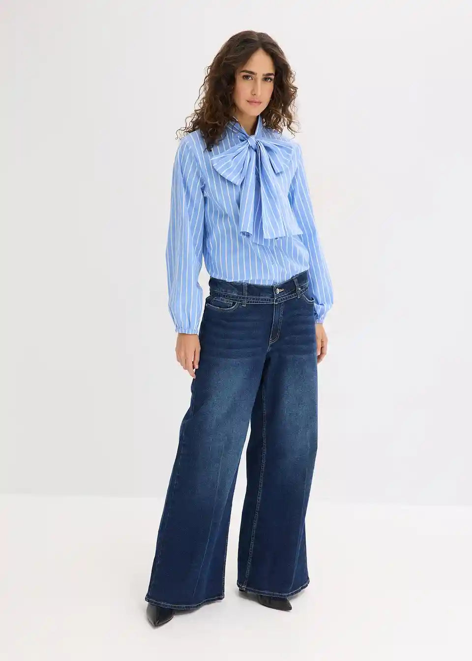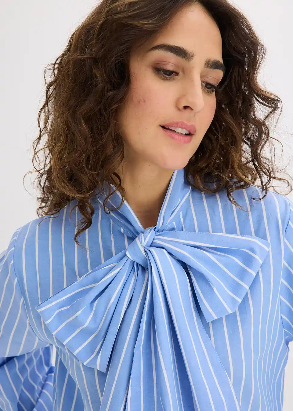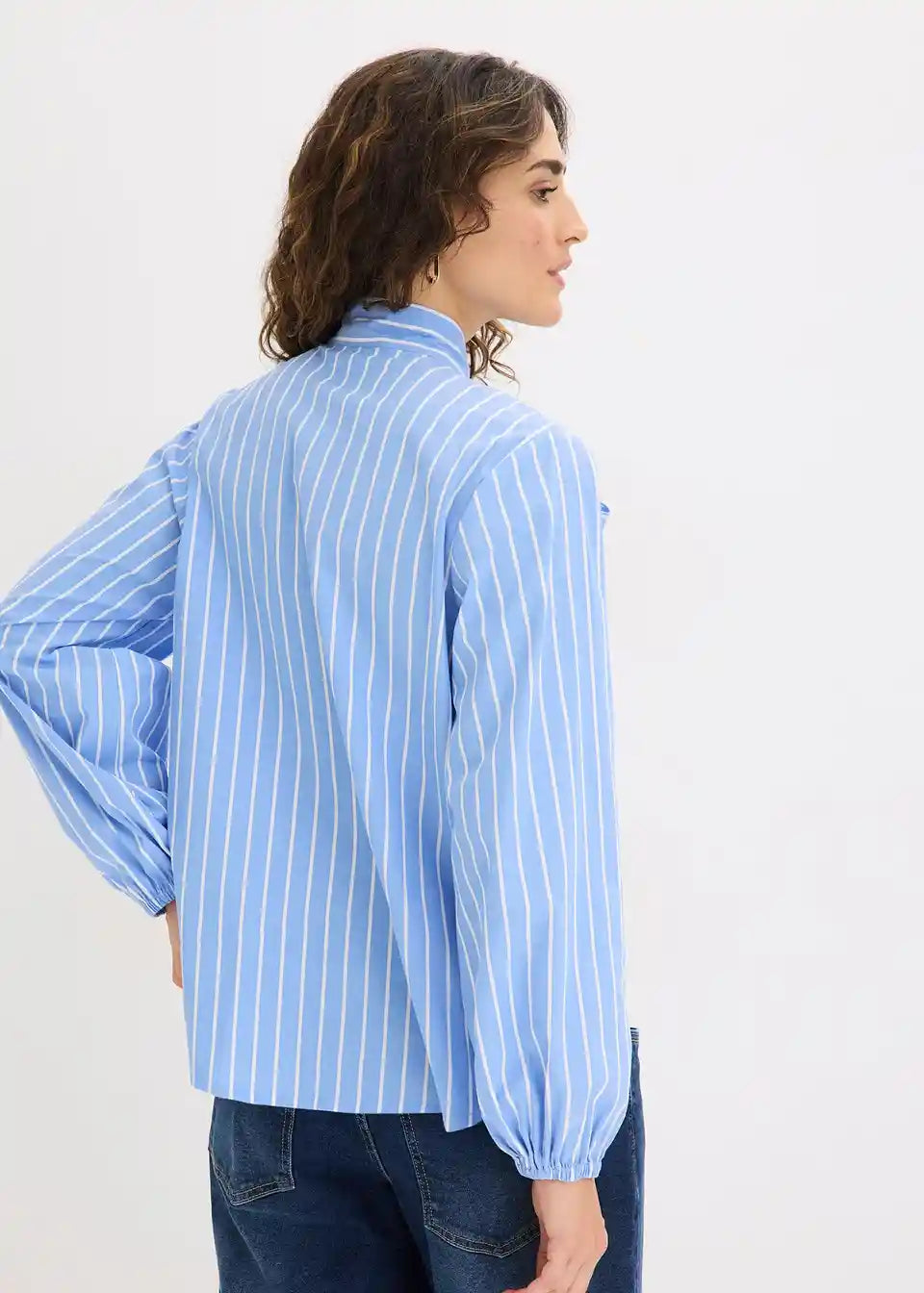 Modna bluza brez zapenjanja iz bombažnega poplina z letvijo za zapenjanje spredaj