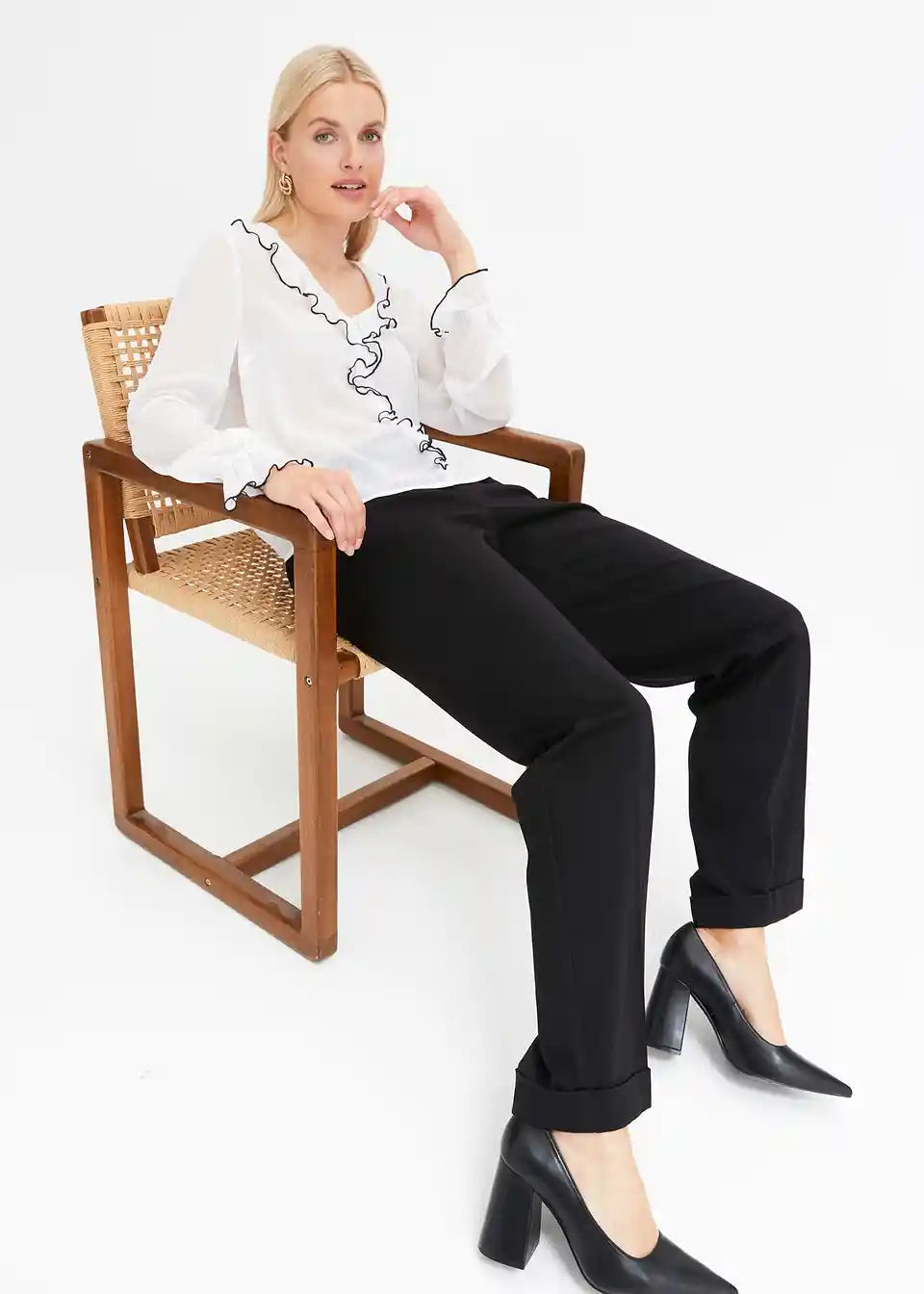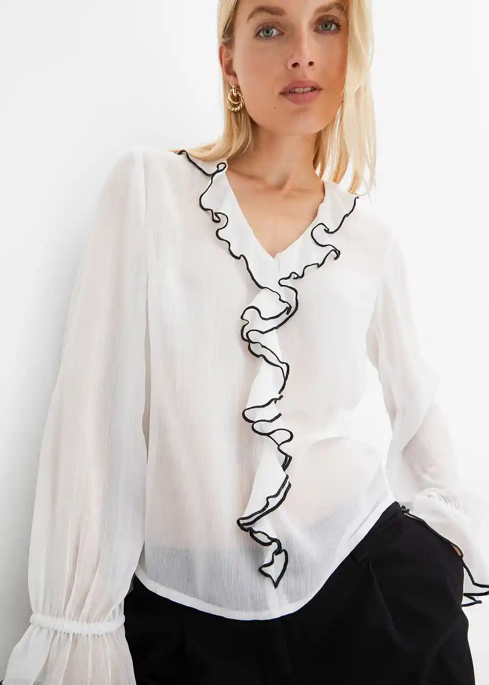 modna bluza z volančki