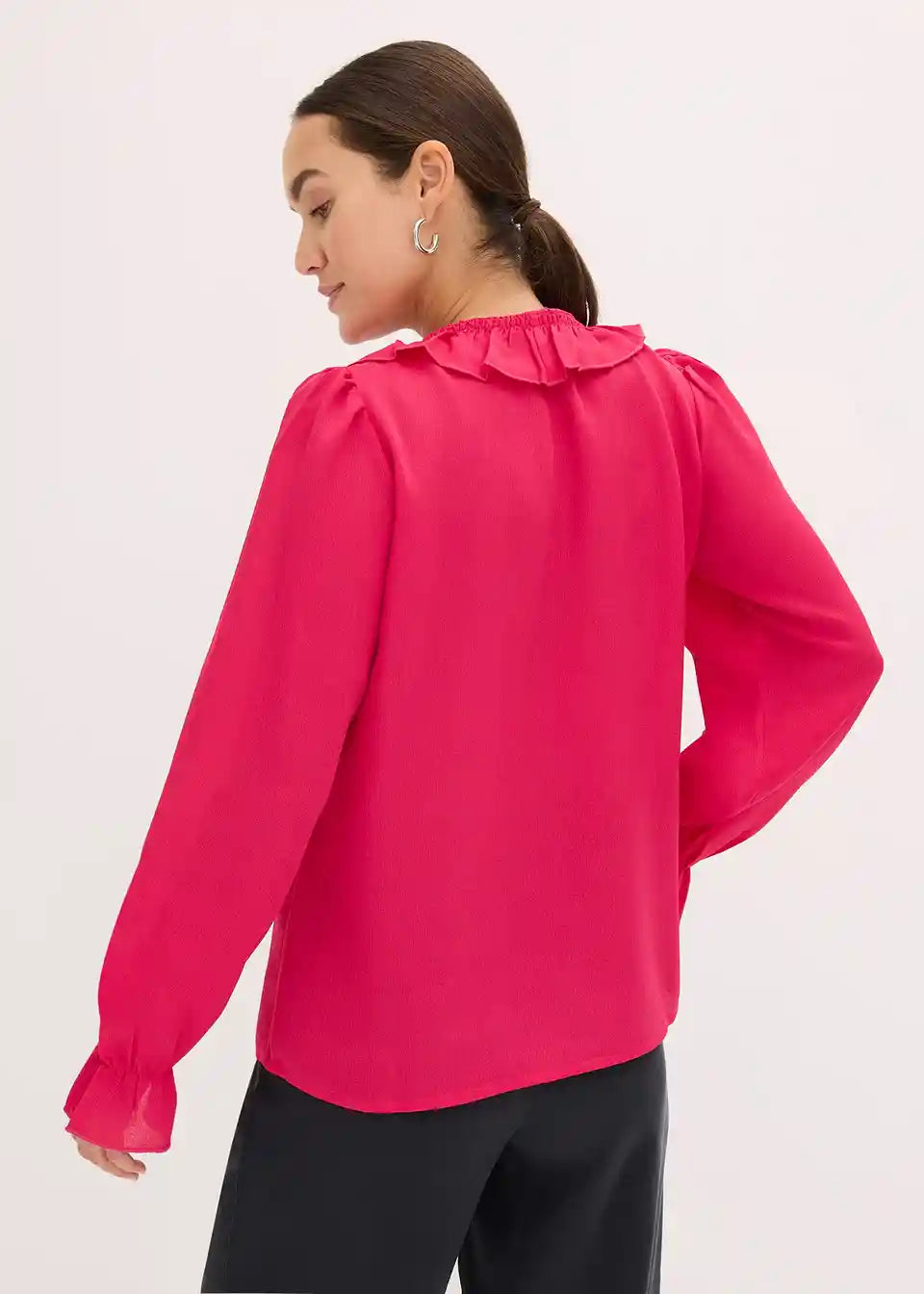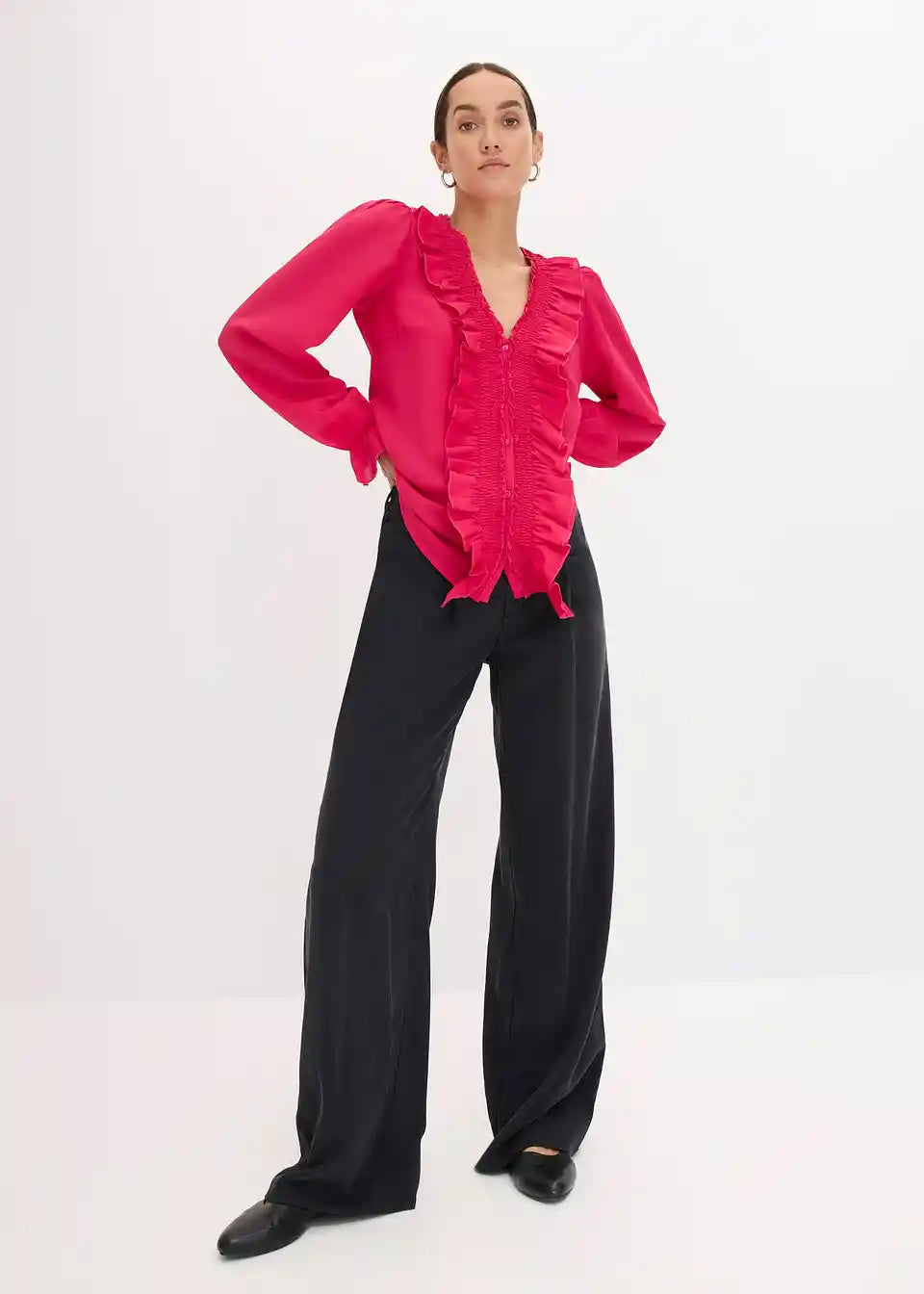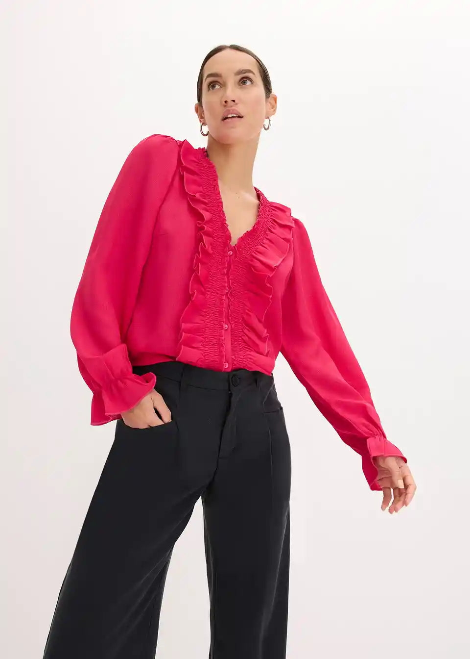 modna bluza z volančki na izrezu in vzdolž sprednje zadrge