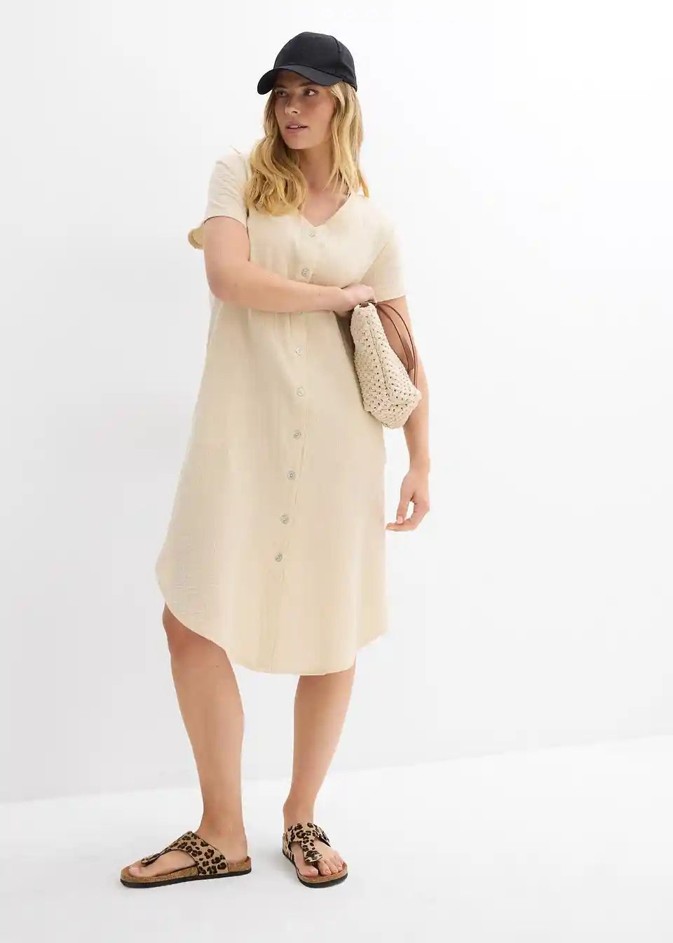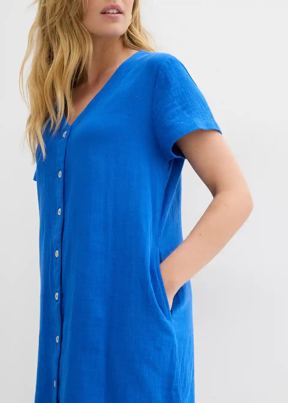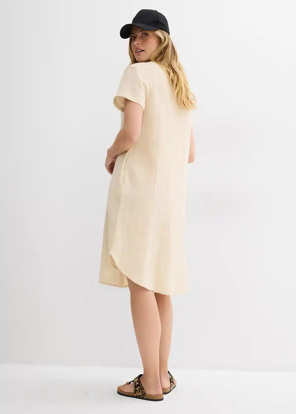 Obleka v laskavi A-liniji s stranskimi žepi in zaobljenim robom