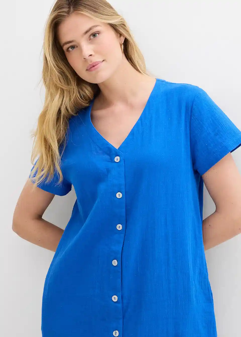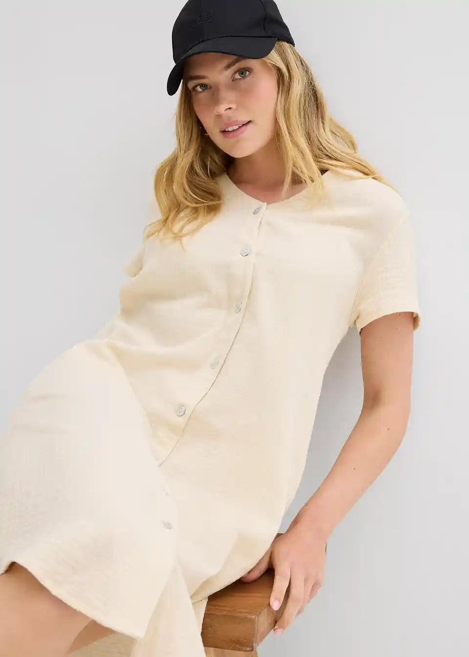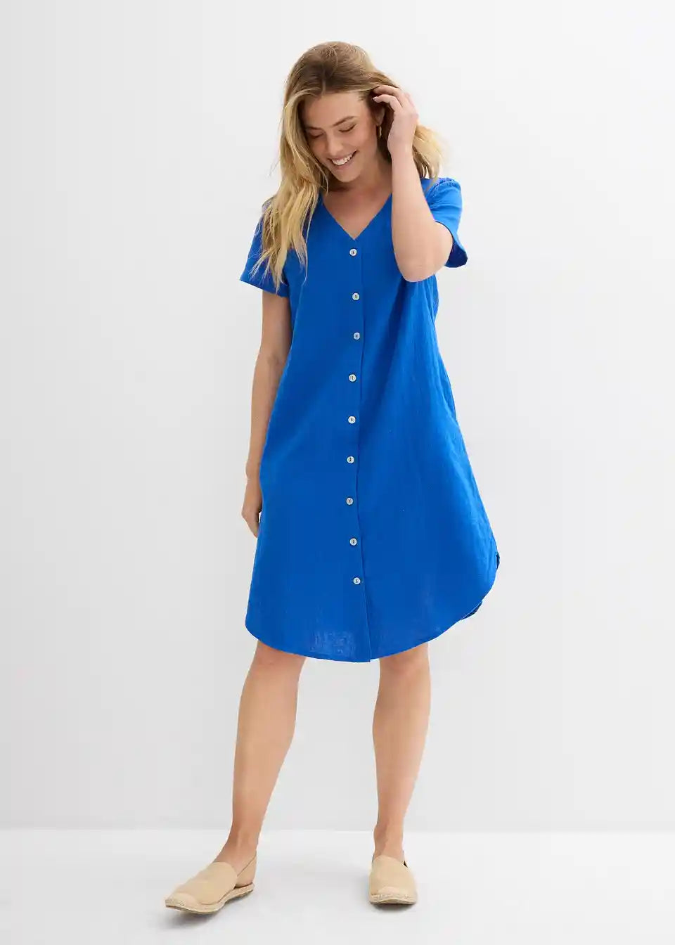 Obleka v laskavi A-liniji s stranskimi žepi in zaobljenim robom
