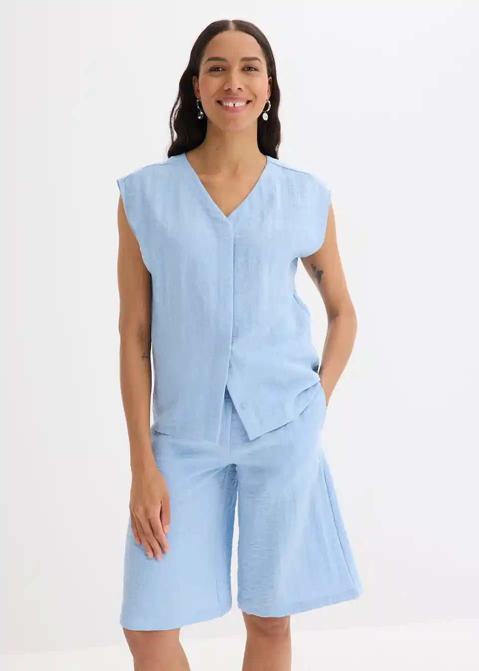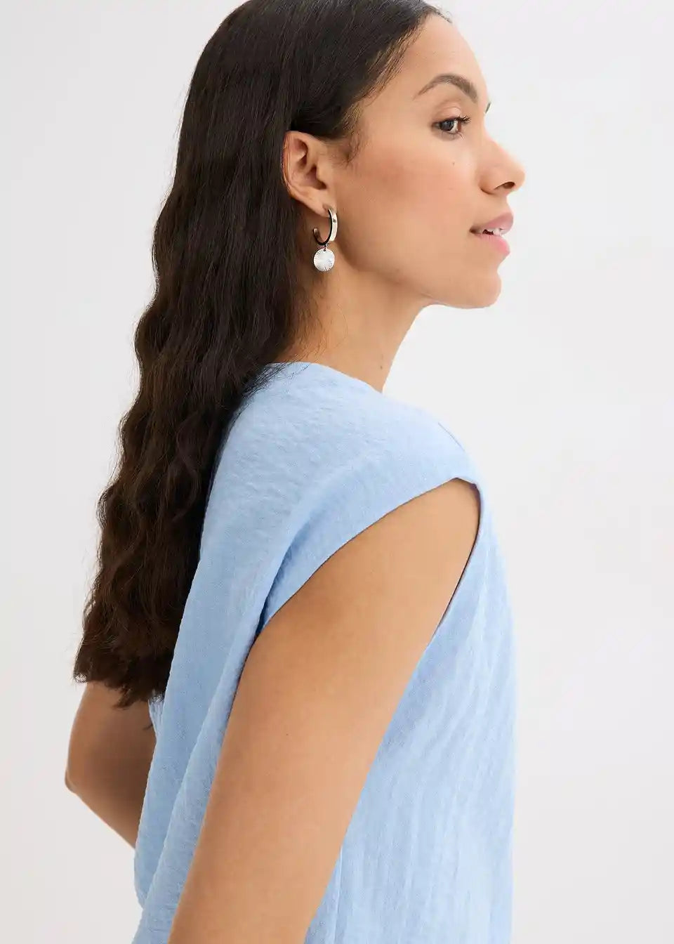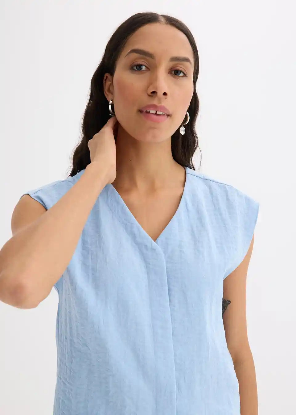 ohlapno krojen bluzen top iz poletne strukturirane tkanine