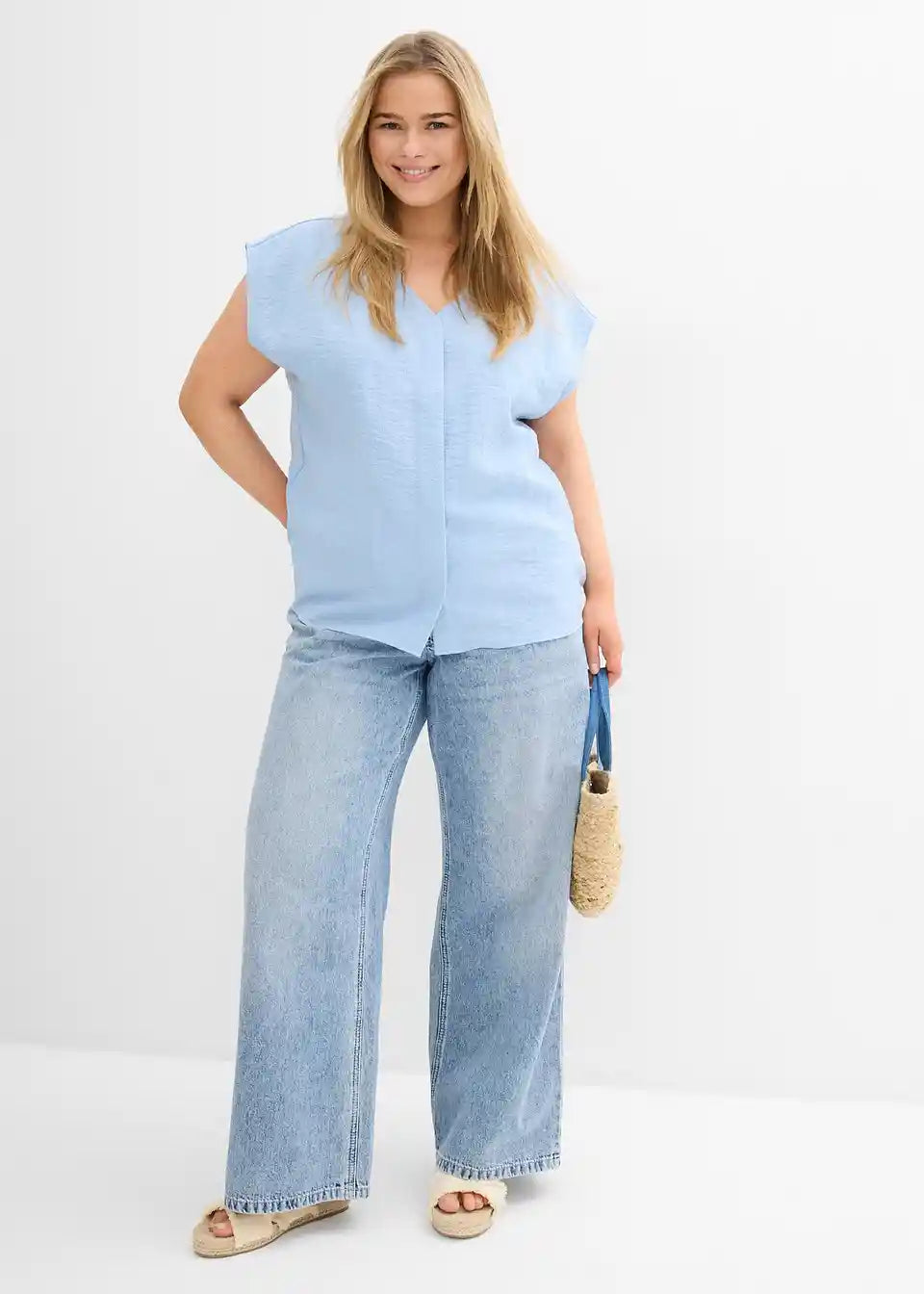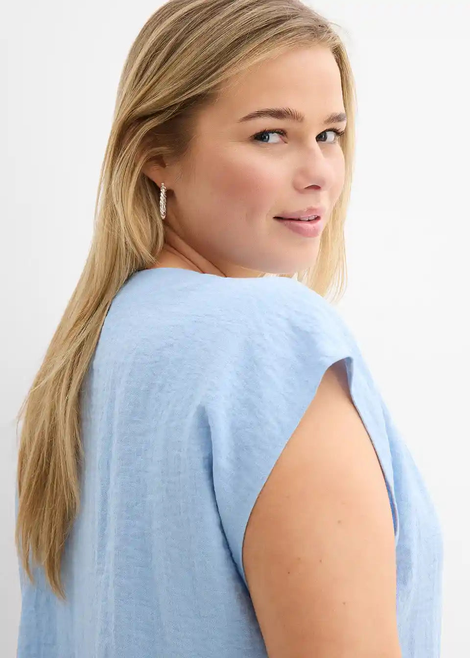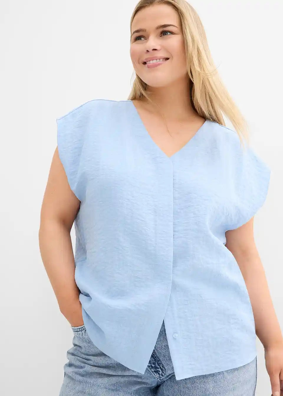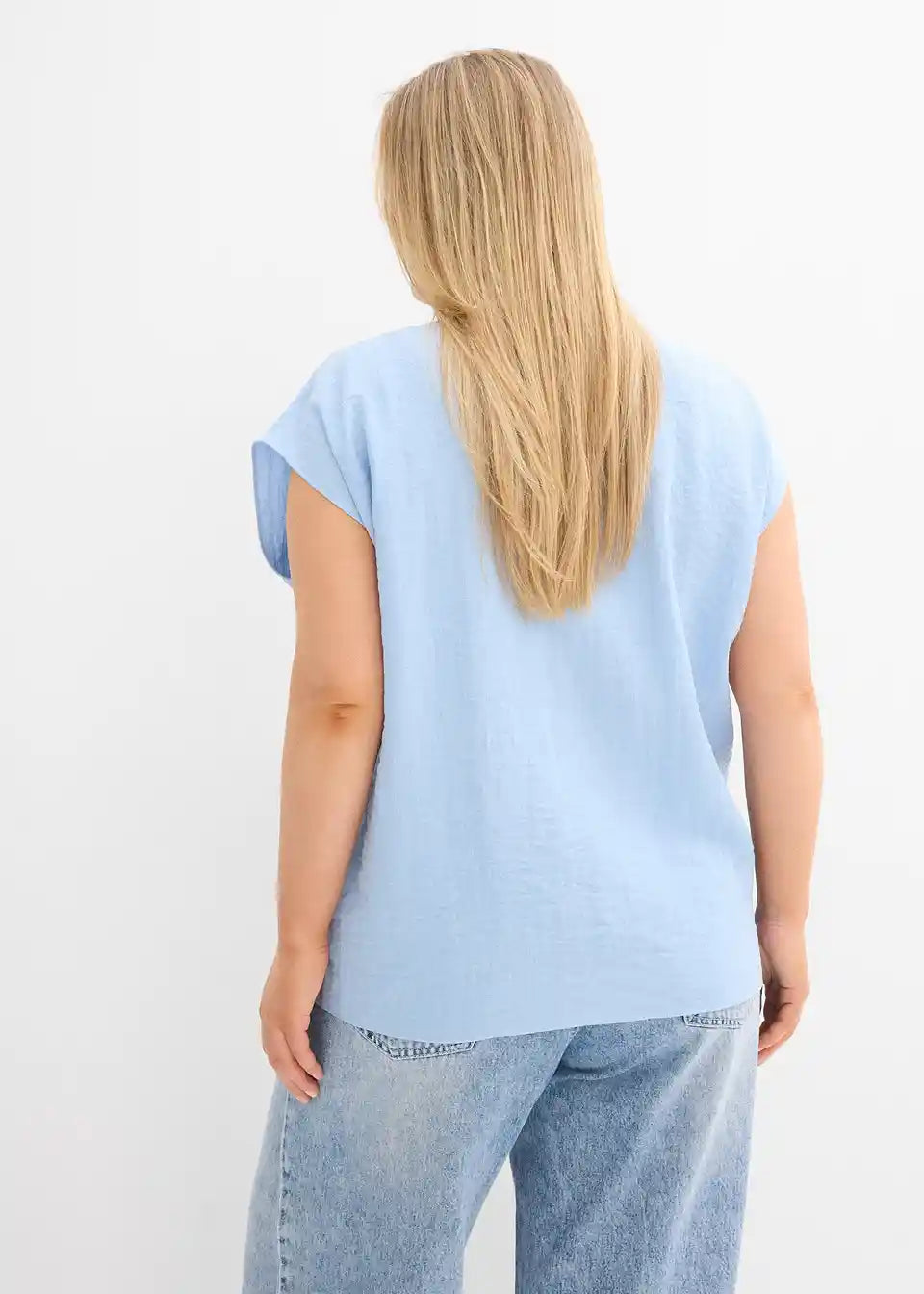 široko krojen bluzen top iz poletne strukturirane tkanine