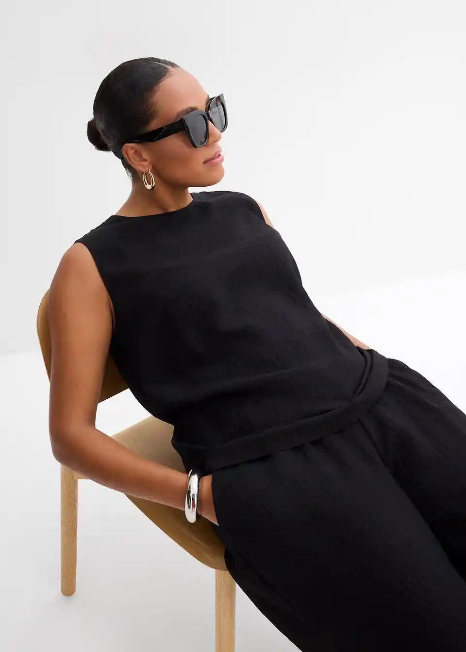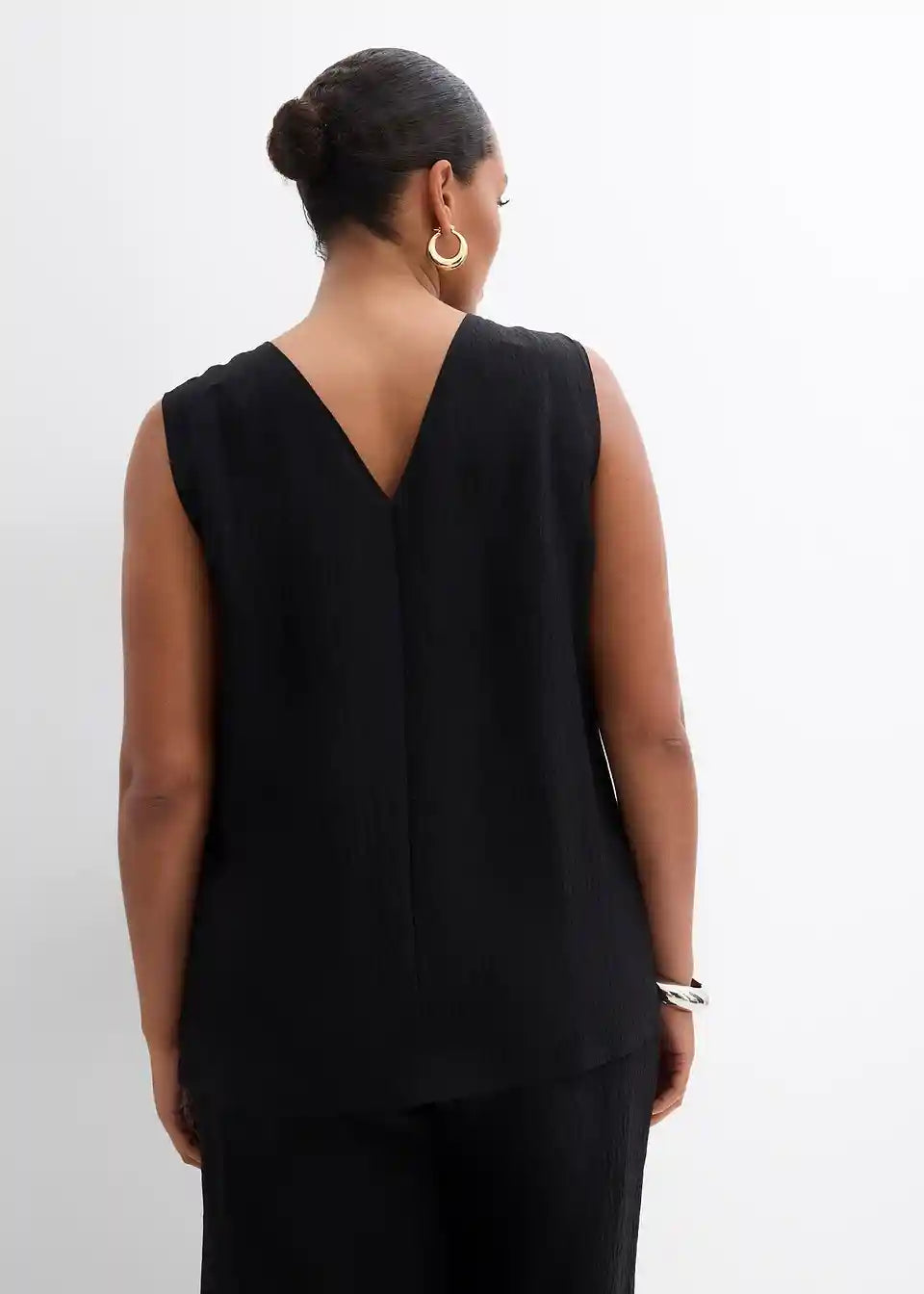 Ravno krojen brezrokavnik z okroglim izrezom iz strukturirane Crinkle tkanine