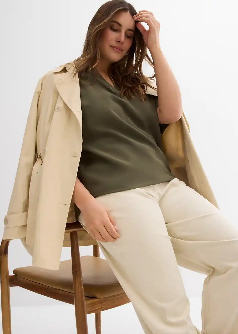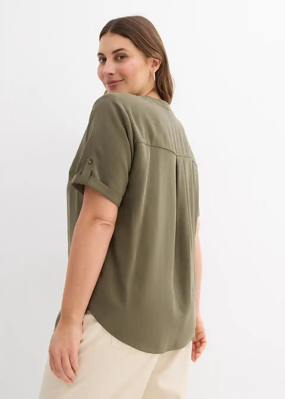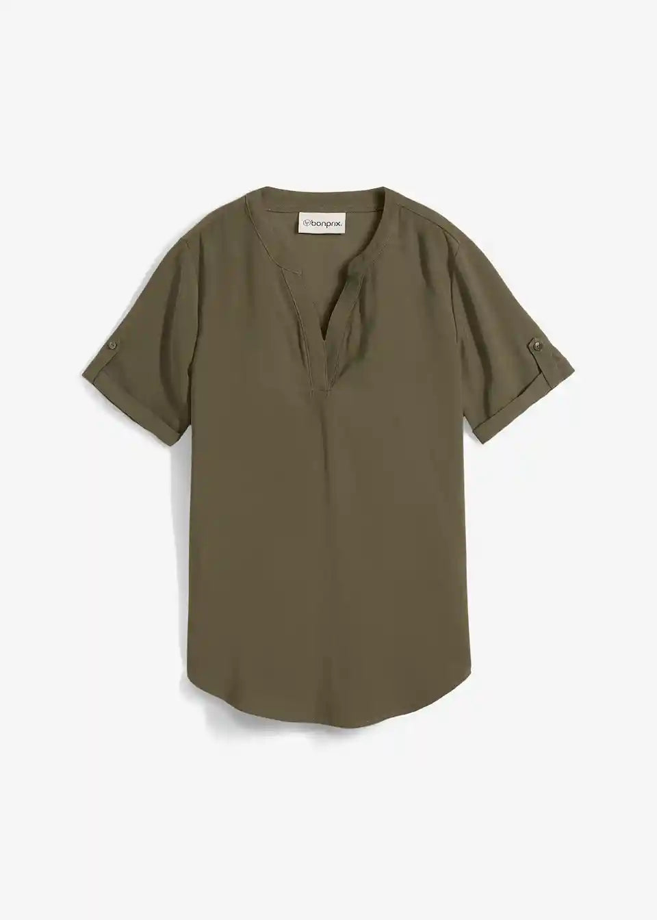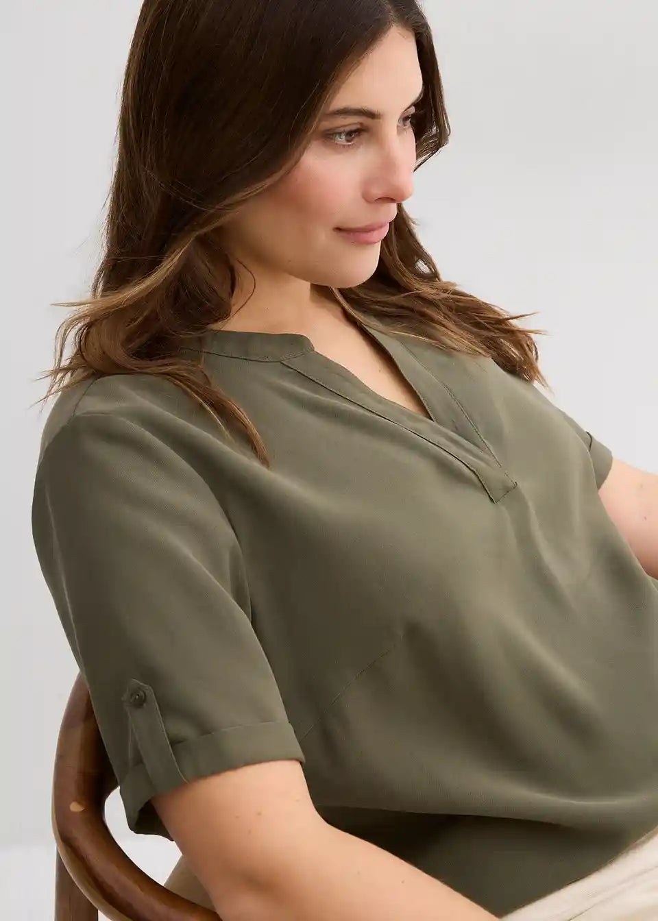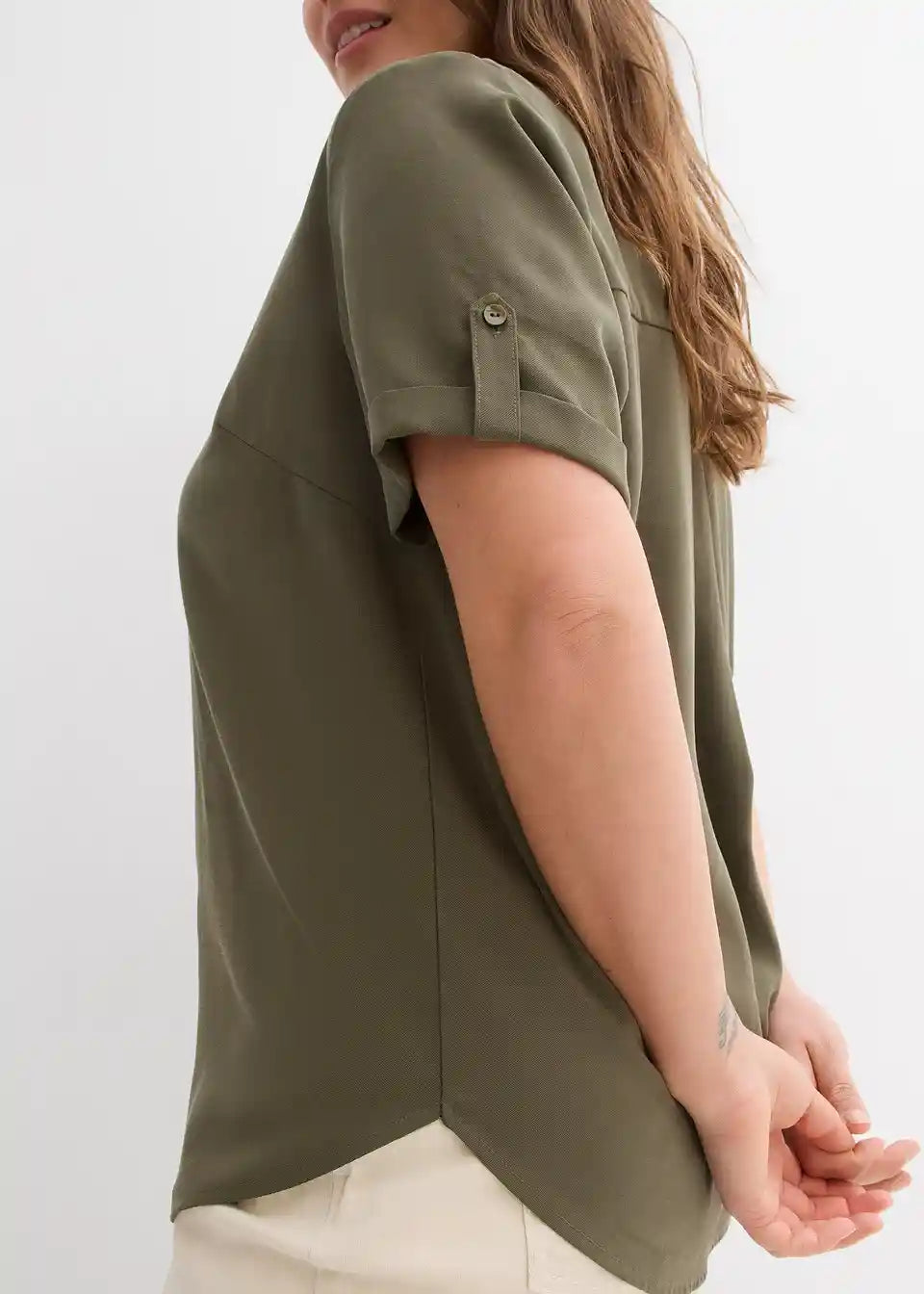 Bluzica z lahkotnim V-izrezom in navzgor zavezanimi rokavi