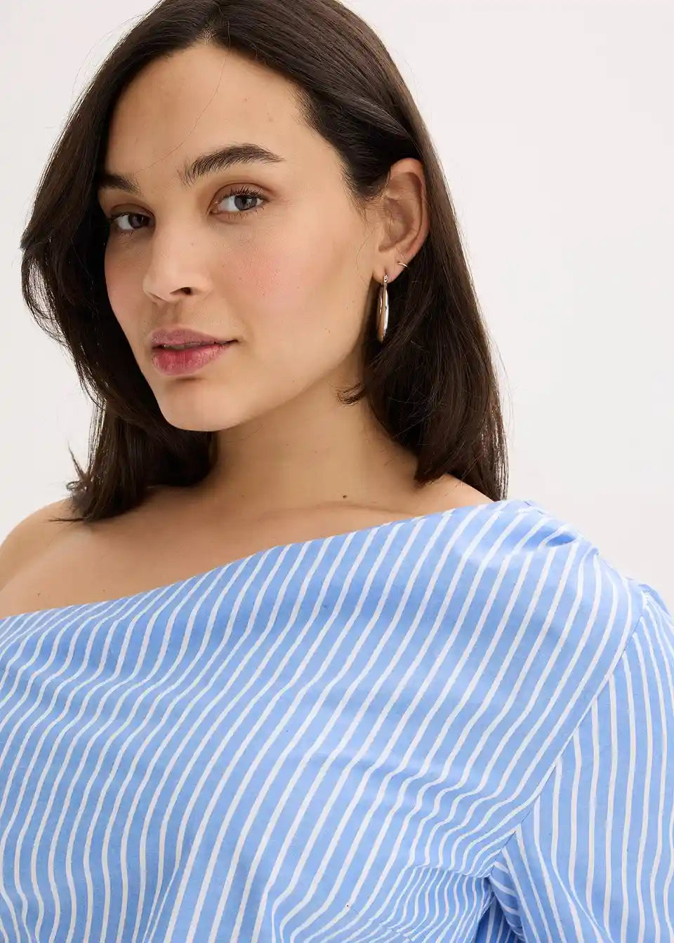 Bluzka z odprtimi rameni z vzorcem črt