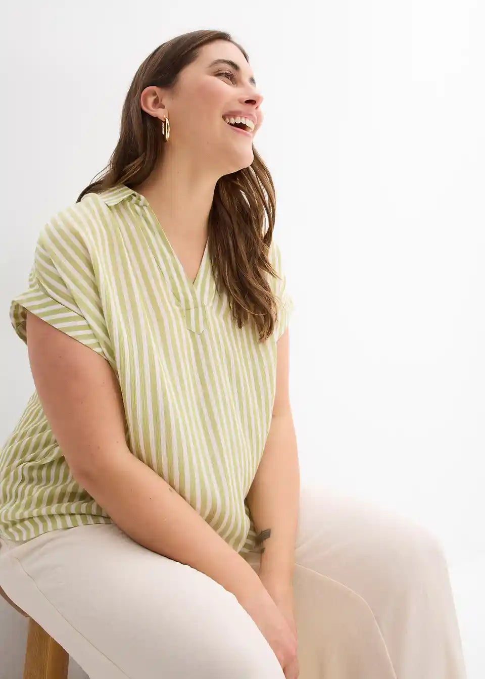 Zračna bluzka s kratkimi rokavi in črtami