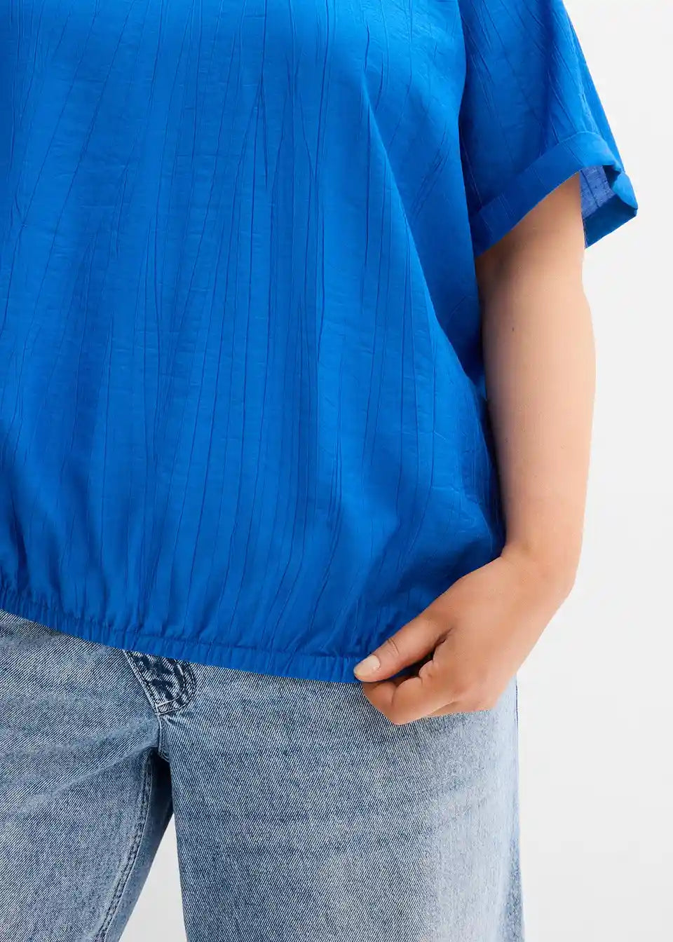 Bluzka s kratkimi rokavi z okrasnim gubom in zavihanim raglan rokavom ter elastičnim robom.