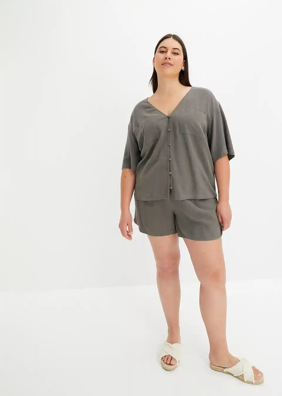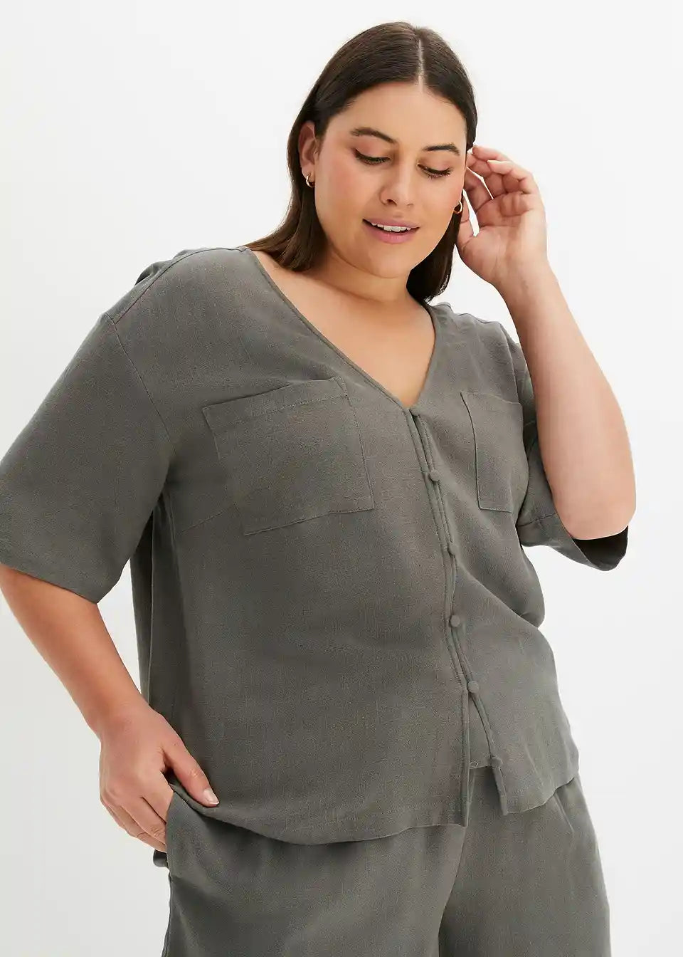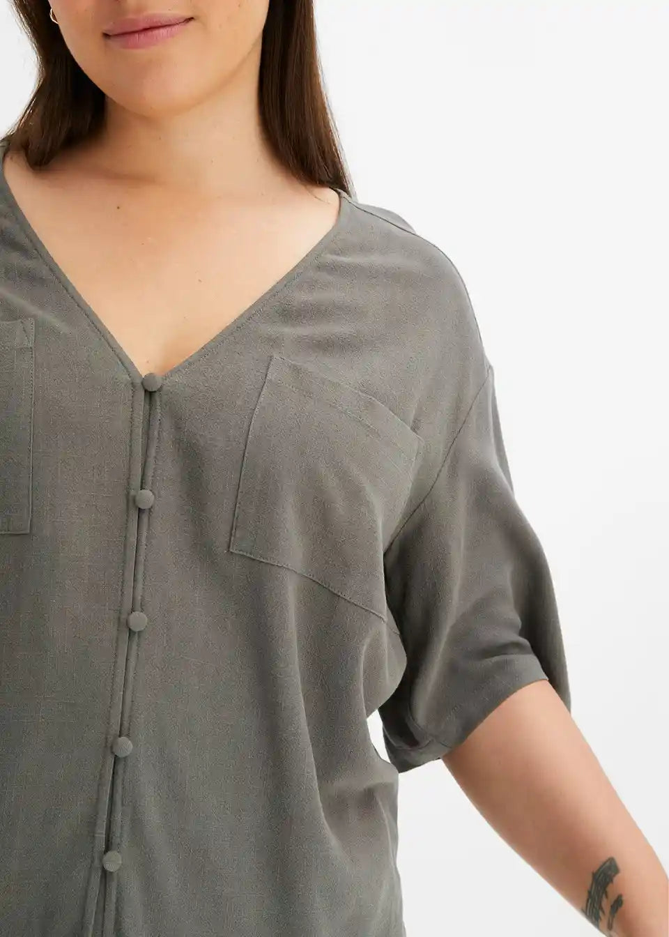 Bluza s kratkimi rokavi iz viskoze in lanu