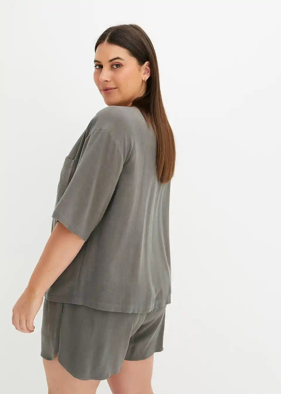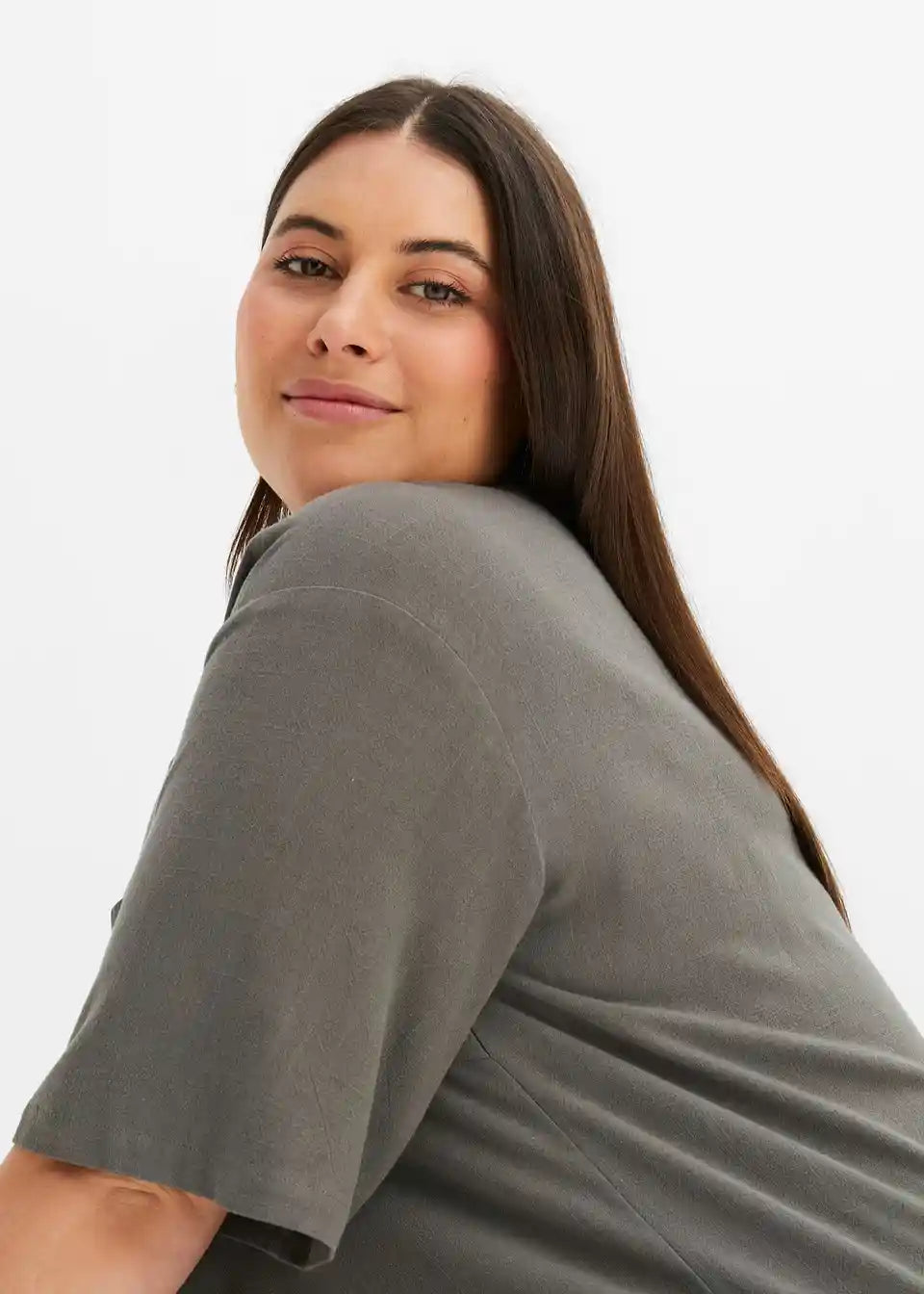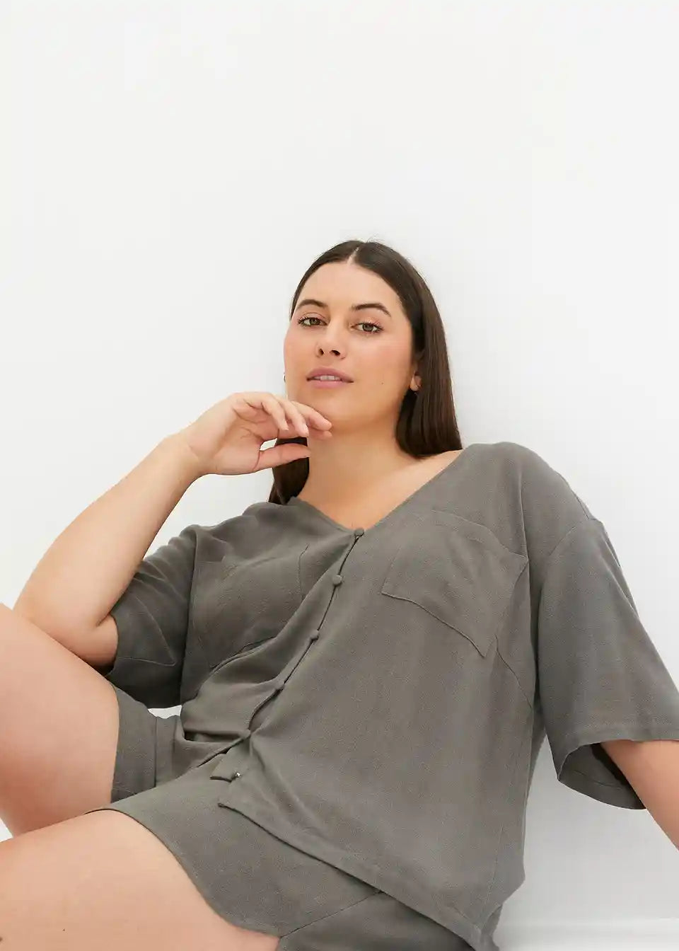 Bluza s kratkimi rokavi iz viskoze in lanu