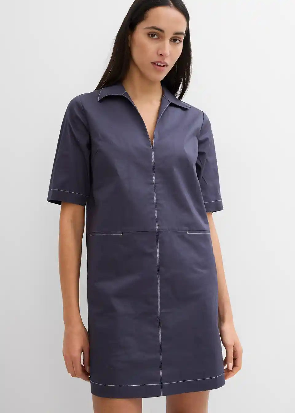 Srajčna obleka z odprtim ovratnikom in sprednjimi všitimi žepi