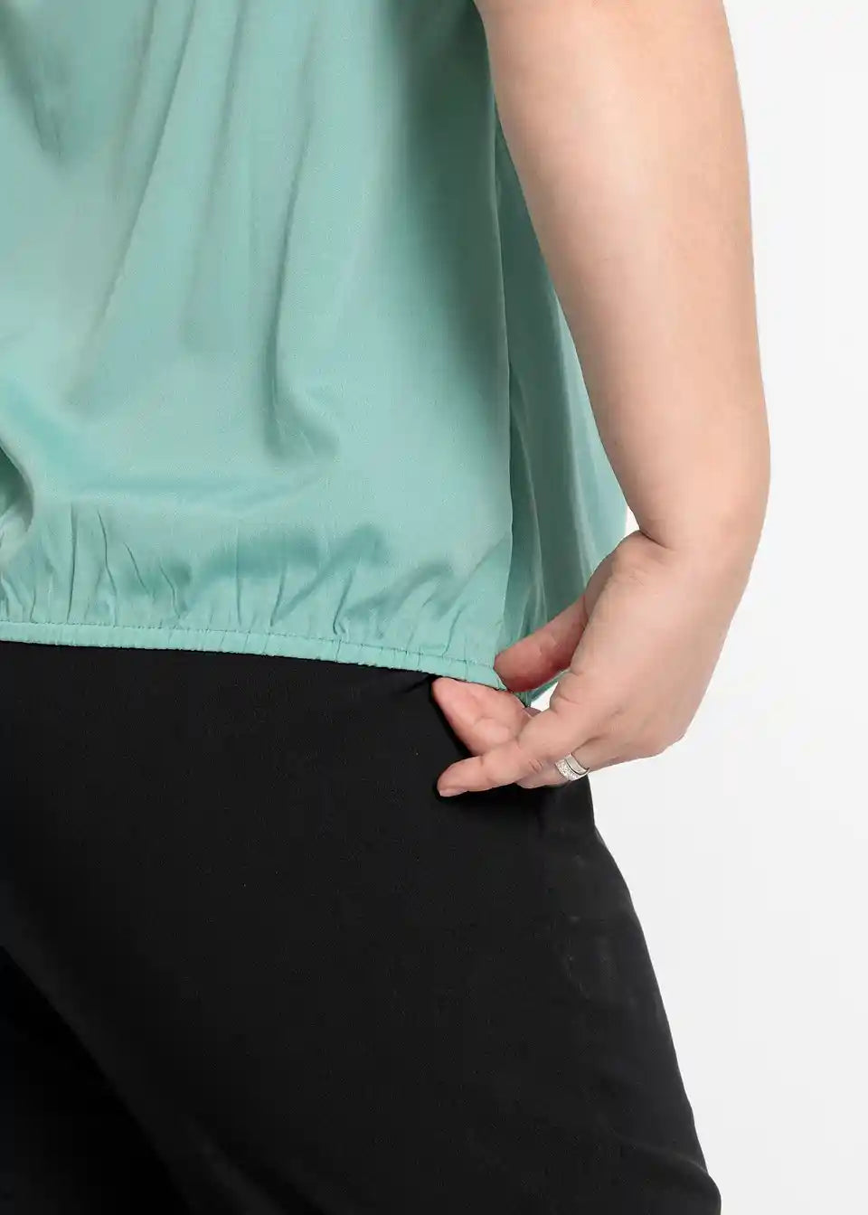 Posebnosti kroja:za poudarjen dekolte, z vpeljano elastiko v pasu z naborki