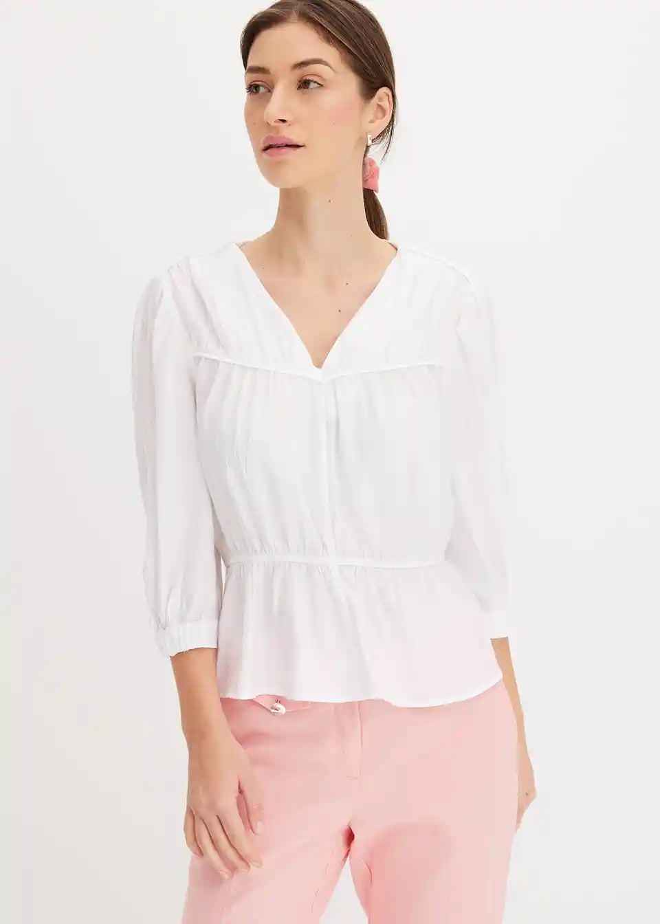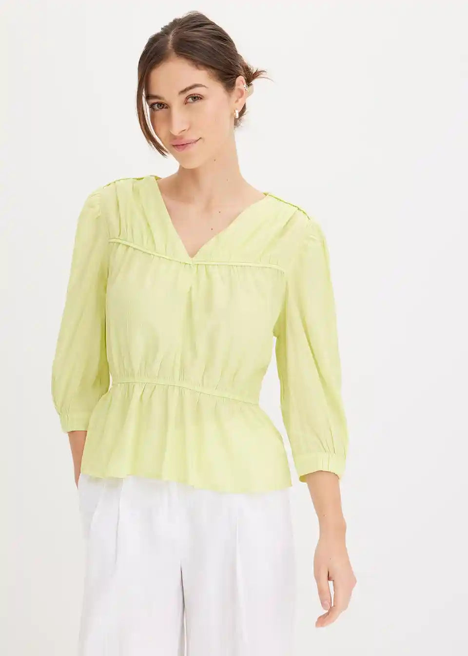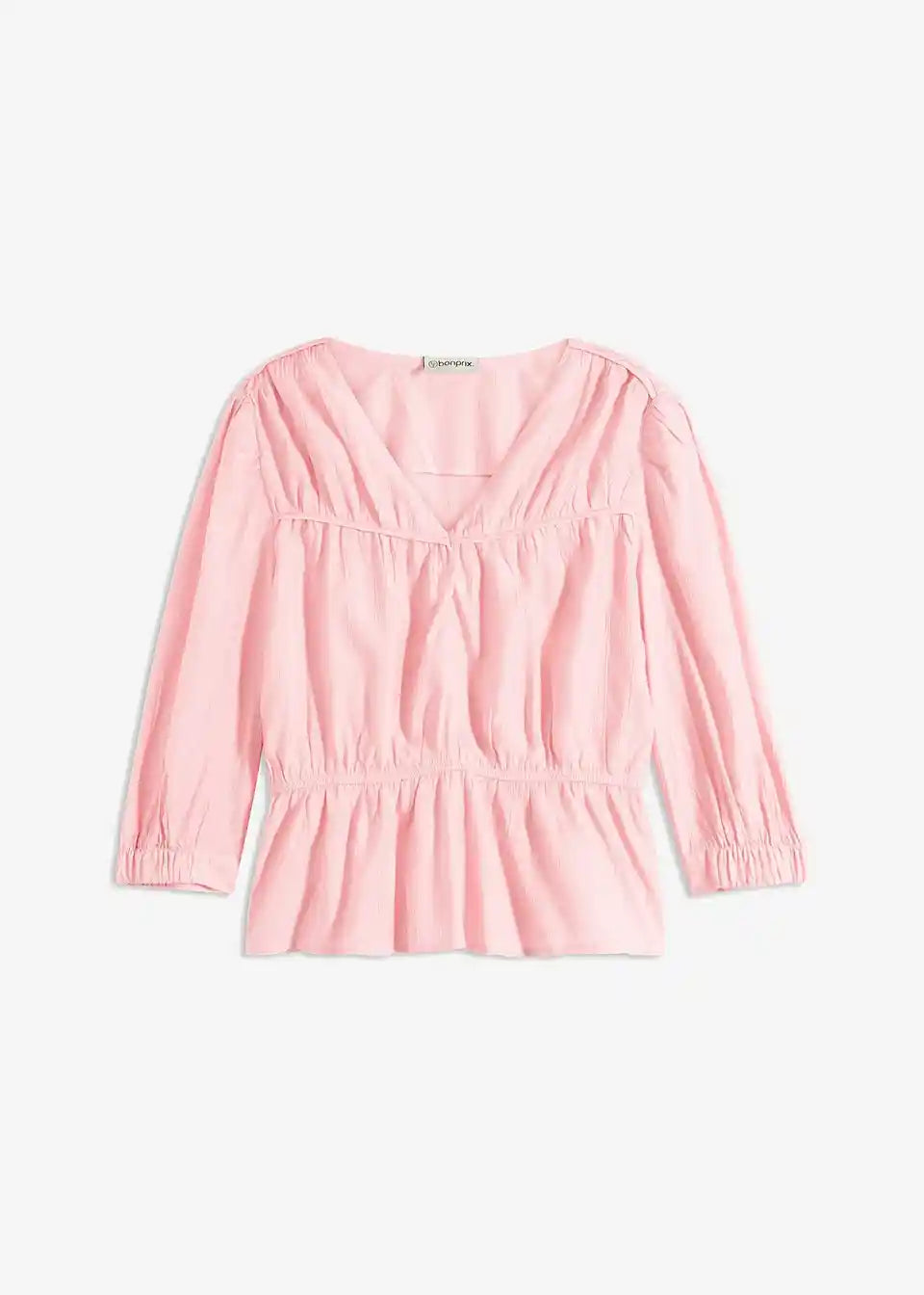 Bluzni top z našitimi gubami in elastičnim pasom v predelu pasu