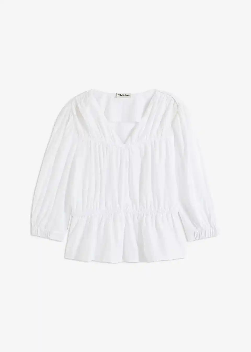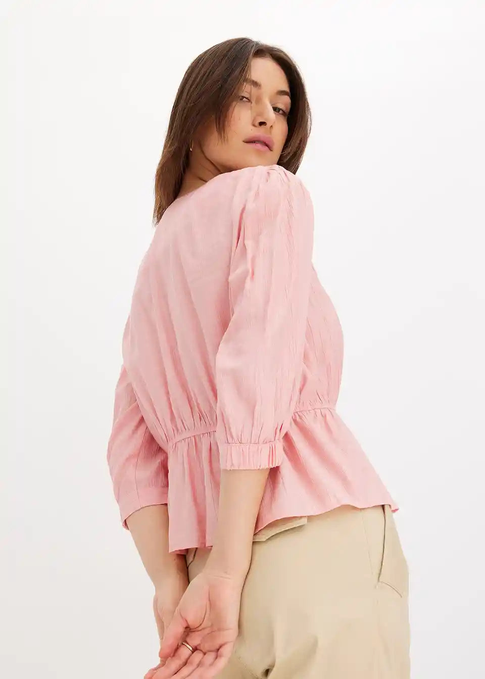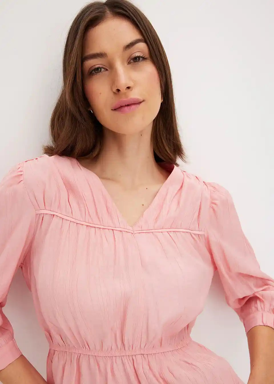 Bluzni top z našitimi gubami in elastičnim pasom v predelu pasu