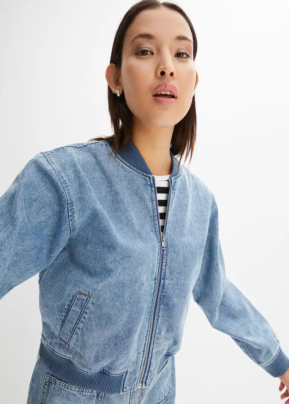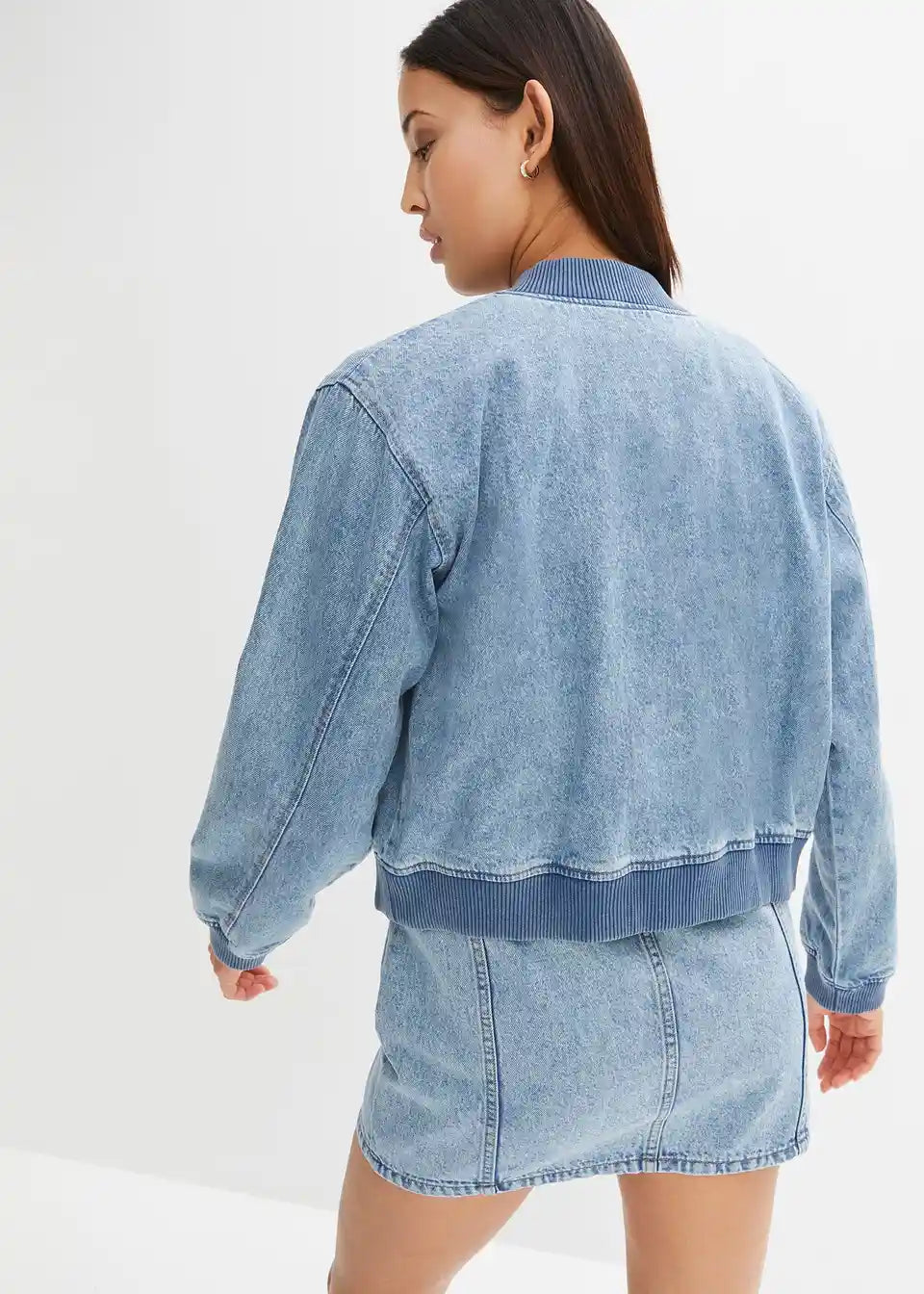 Trendna Bluzon jakna iz denima z rebrastimi patenti