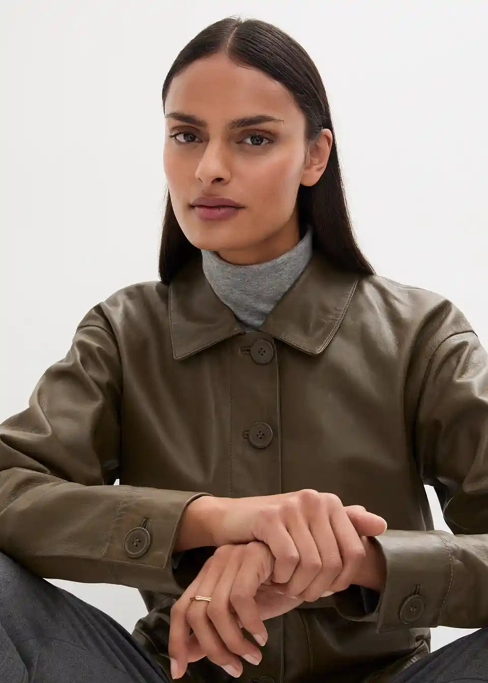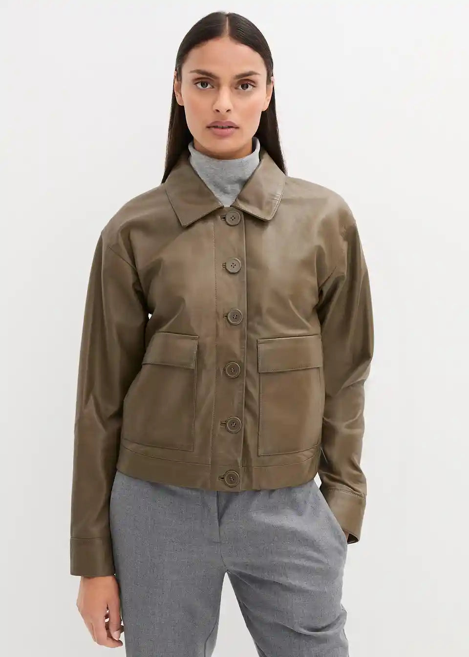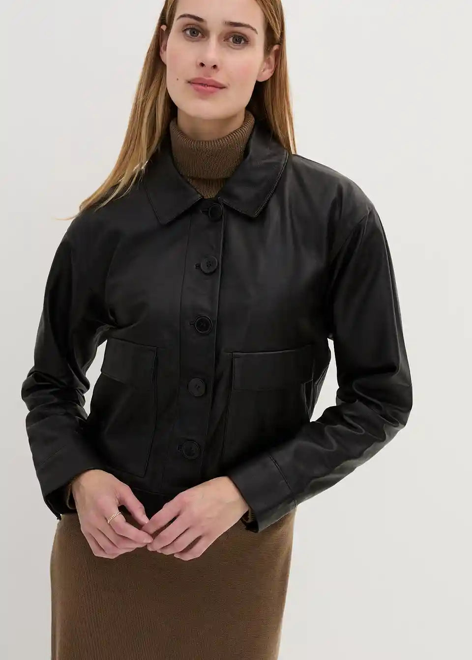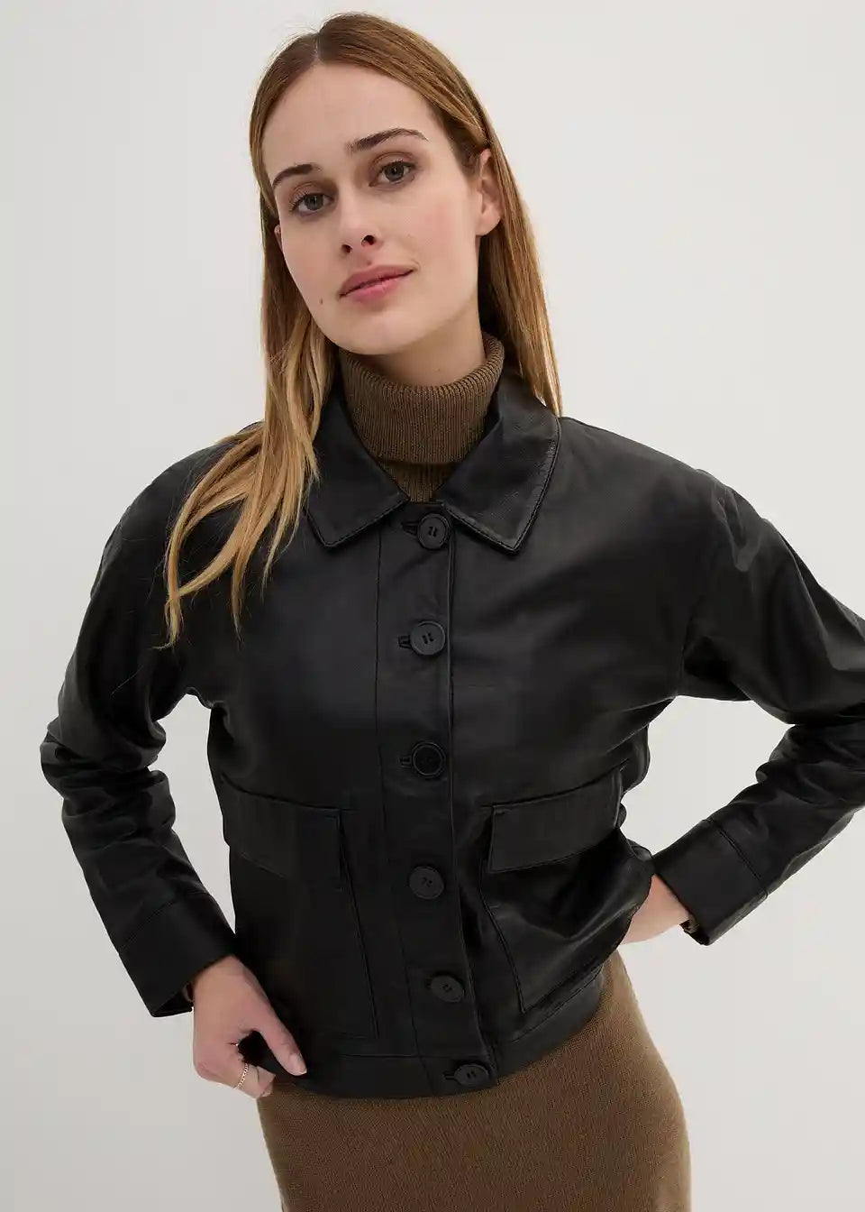 kakovostna in brezčasna usnjena jakna v obliki bluzona