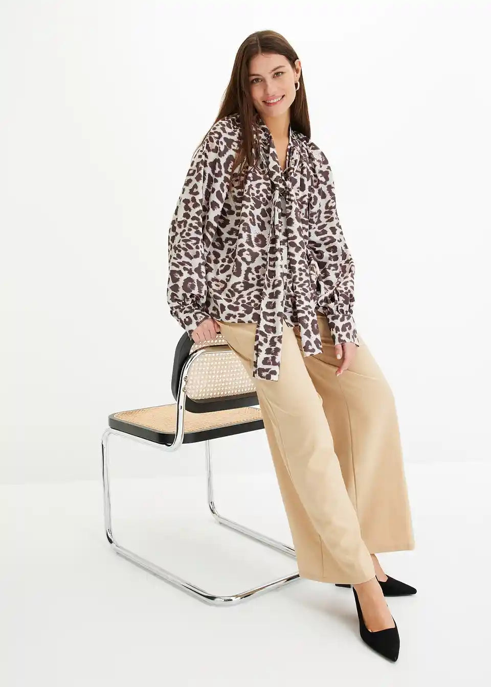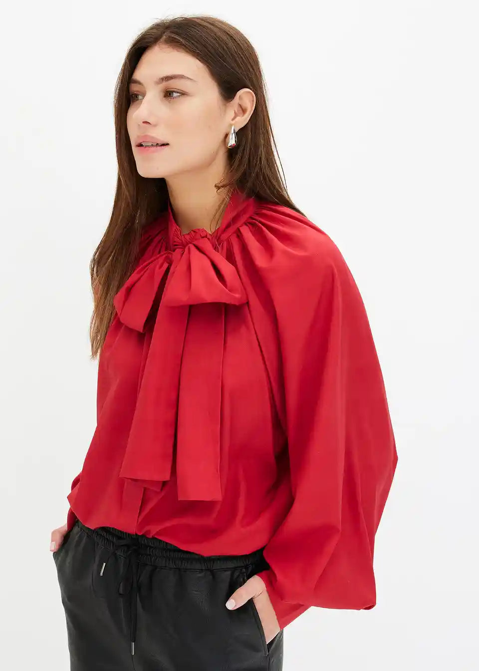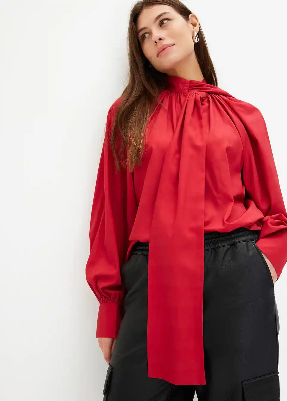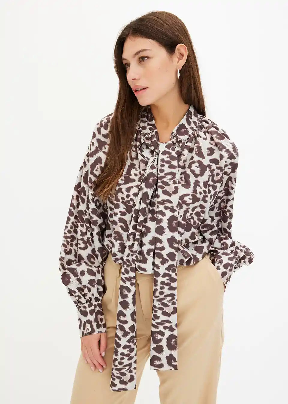 modna bluza s pentljo na ovratniku in sprednjim zapenjanjem z gumbi