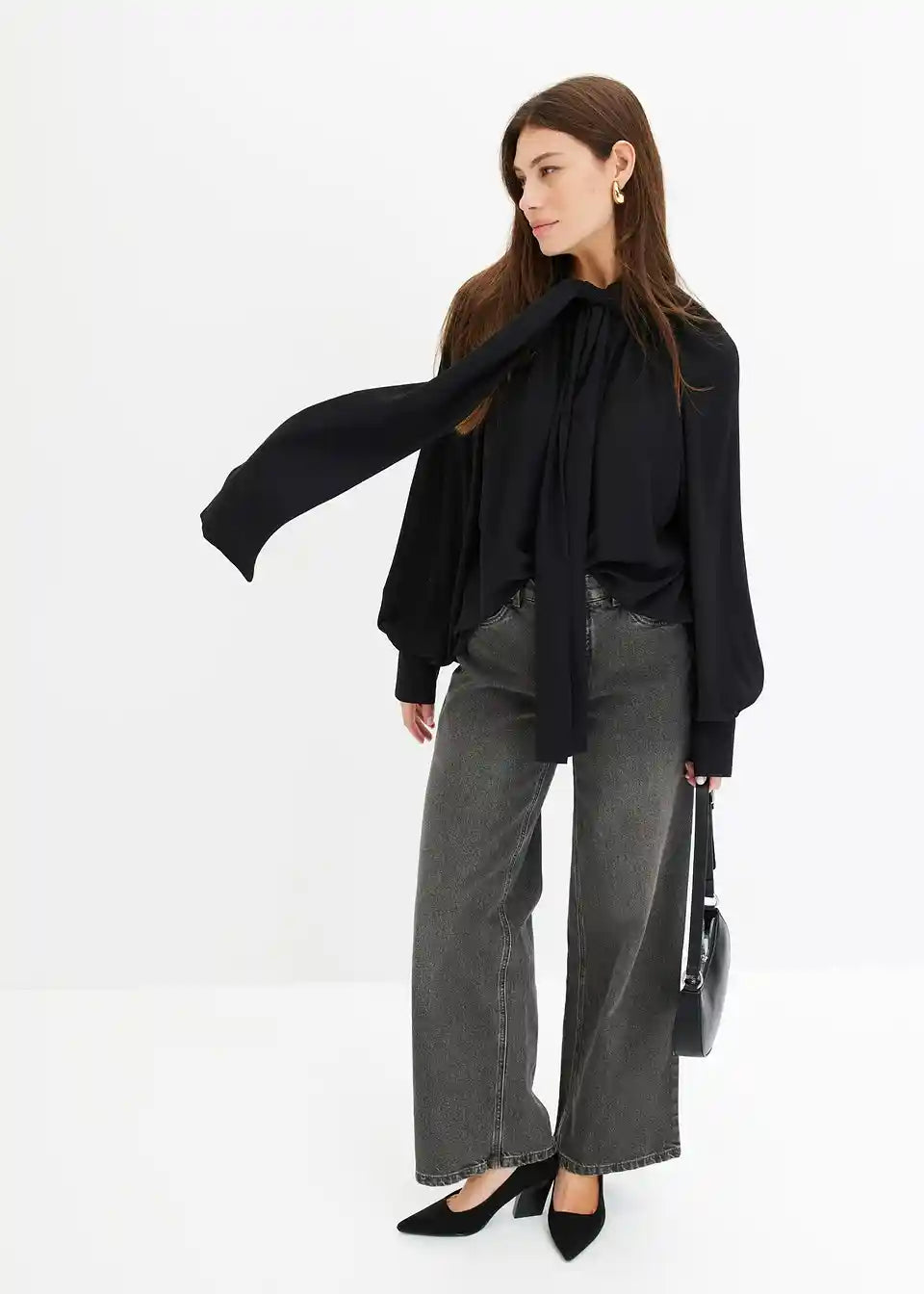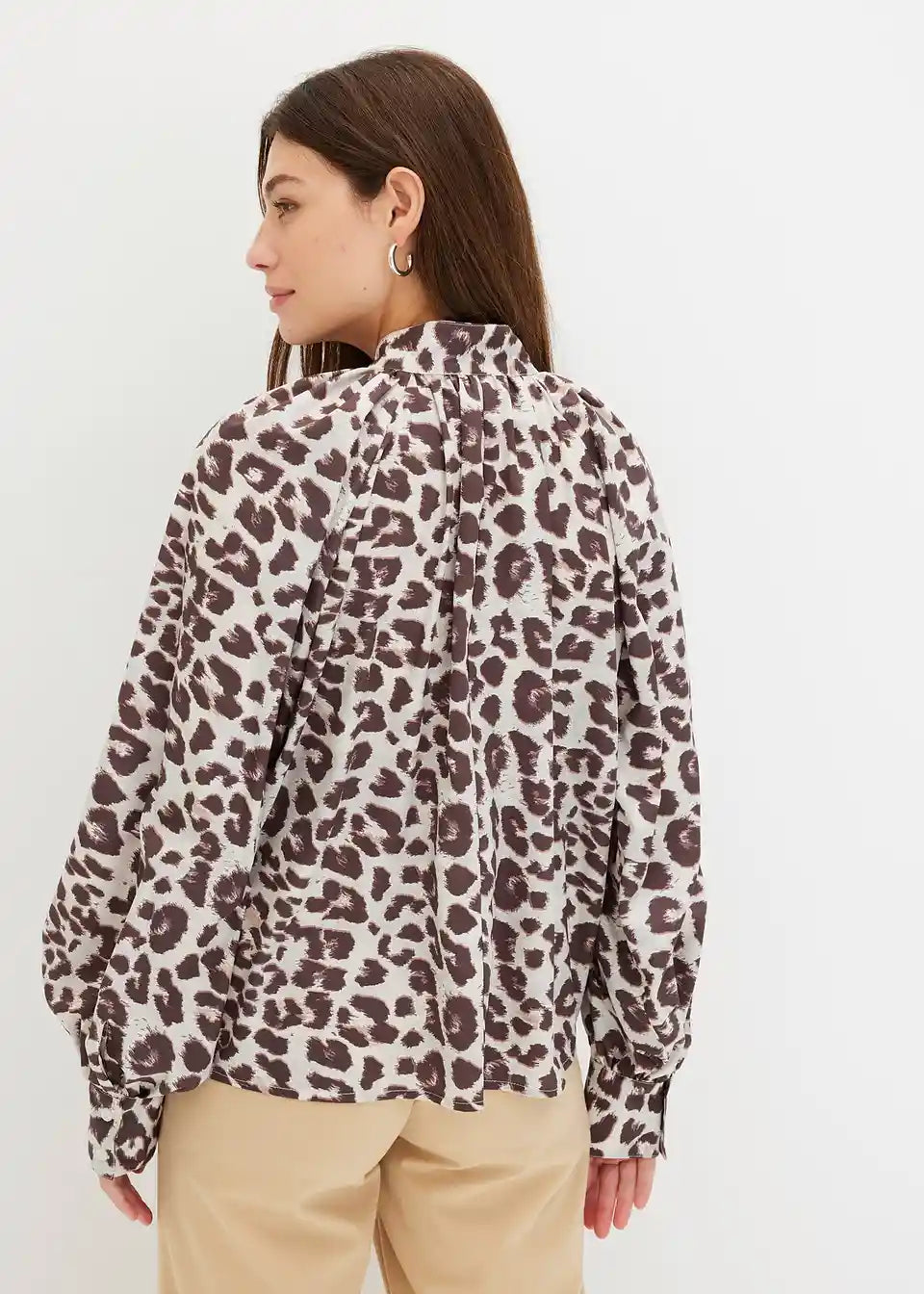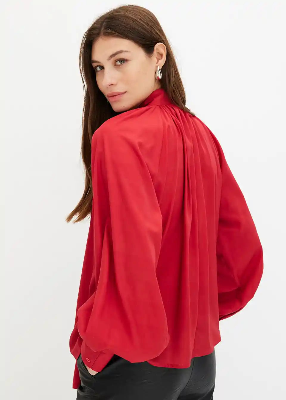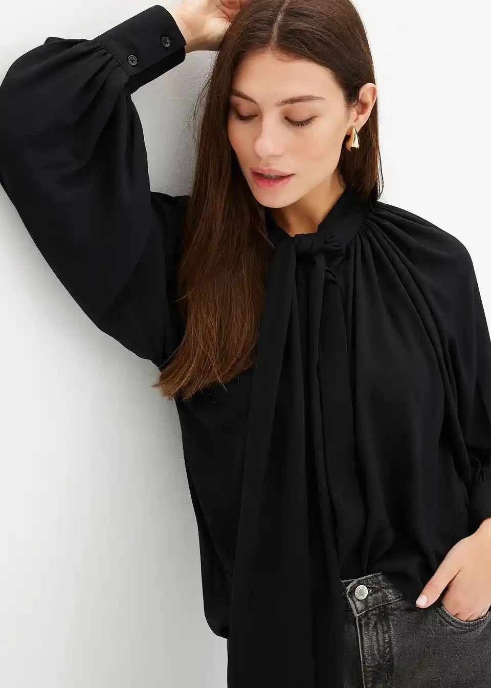 modna bluza s pentljo na ovratniku in sprednjim zapenjanjem z gumbi