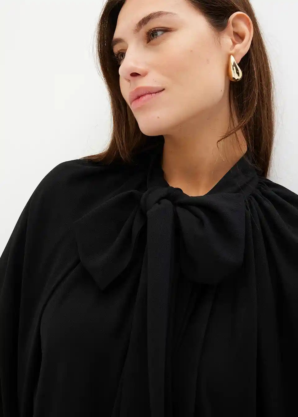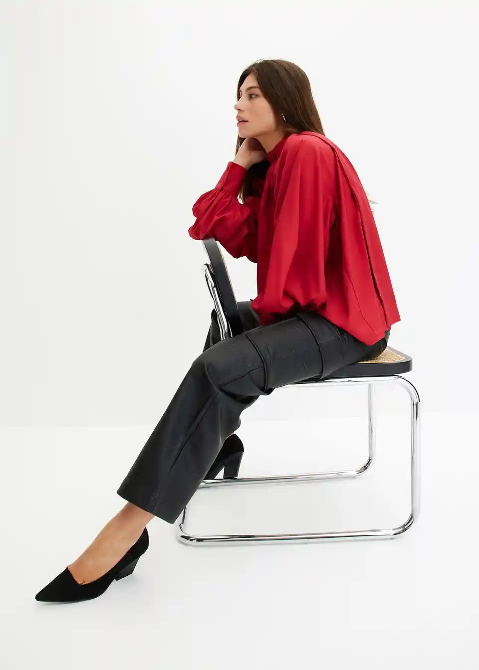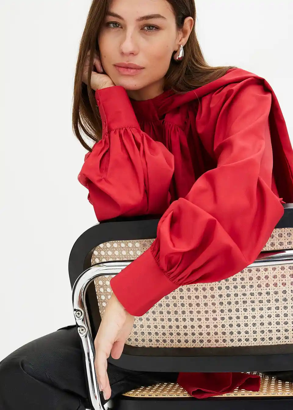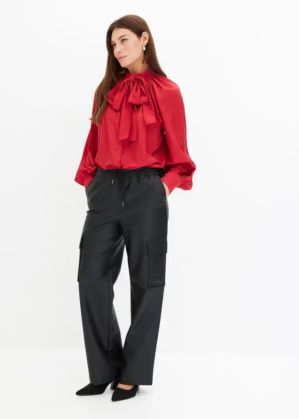modna bluza s pentljo na ovratniku in sprednjim zapenjanjem z gumbi