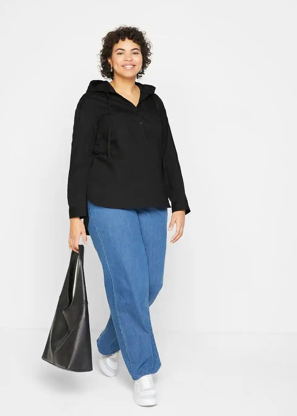 Izpopolnjena bluza s kapuco iz čiste ekološke bombažne tkanine