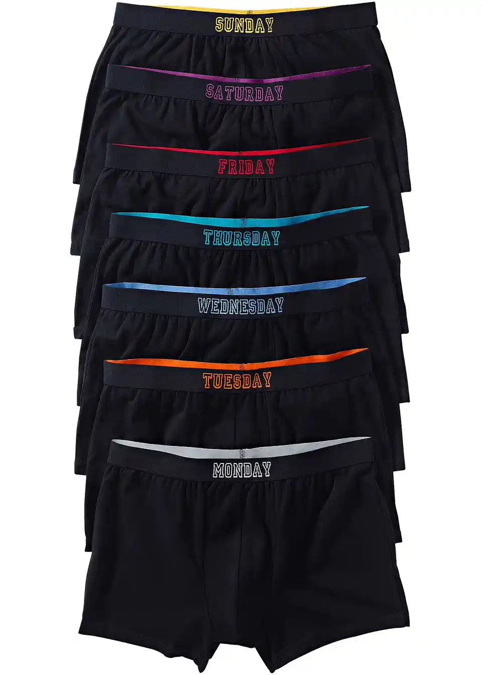 S temi oprijetimi moškimi boksaricami v večdelnem pakiranju iz kolekcije bpc boste popolno opremljeni za cel teden. Črne boksarice prepričajo s čudovitim prileganjem in privlačnim videzom. Širok elastičen pas udobno leži na koži in z notranjo stranjo v kontrastni barvi ter z všitim dnem v različnih barvah postavlja modne poudarke.