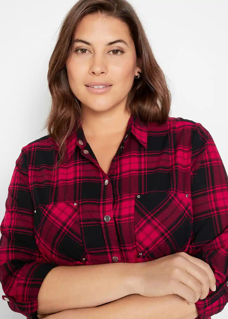 Sproščeno prilegajoča se bluza s pritiskači in zavihljivimi rokavi
