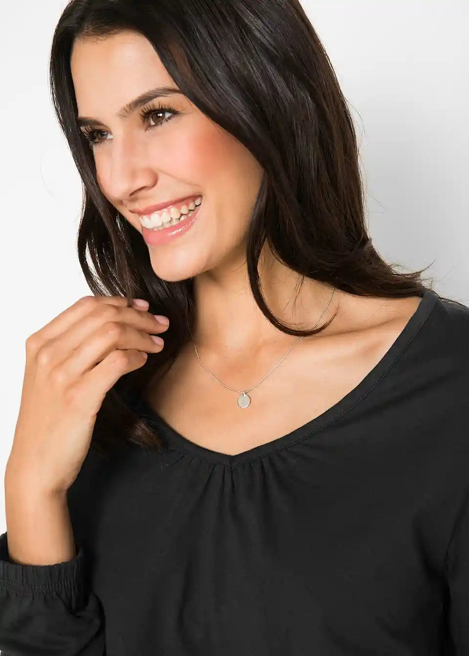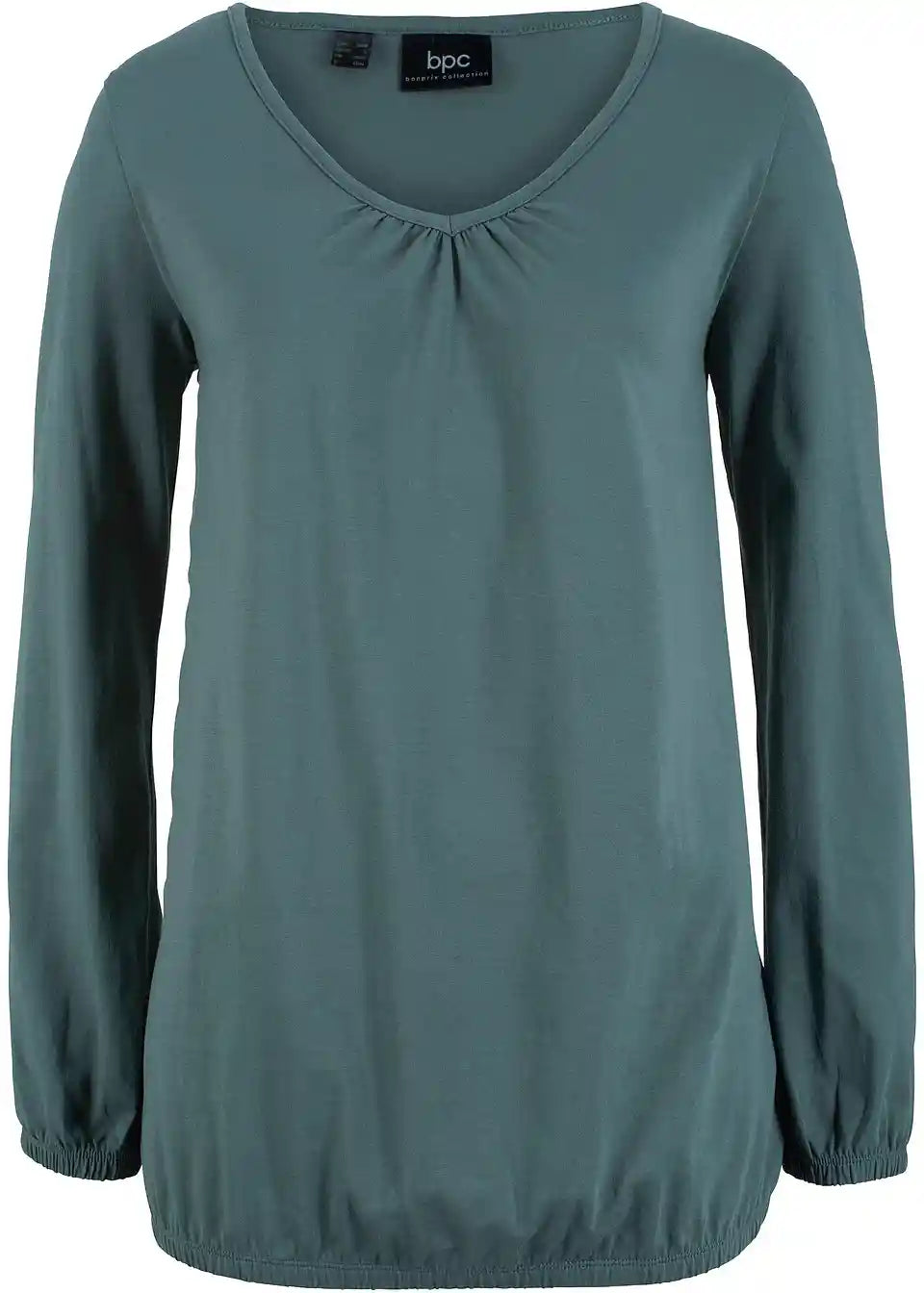 Ta praktična majica z dolgimi rokavi je čudovita osnova za vsakdan. V-izrez z rahlo nagubanostjo doda lep poudarek temu sicer preprostem modelu znamke bpc. Dolga majica z robom in elastičnim zaključkom na rokavih ponuja najboljše udobje nošenja. Široka izbira barv omogoča nosilki različne kombinacije za outfite.
