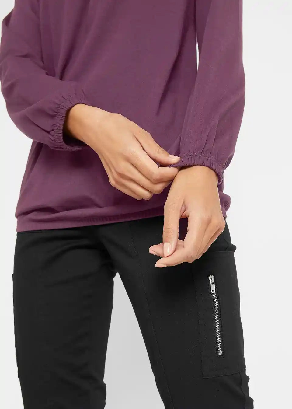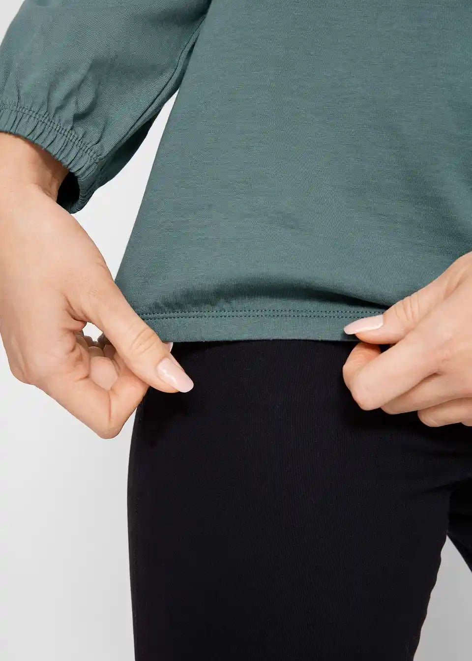 Bombažna majica z dolgimi rokavi in vpeljano elastiko