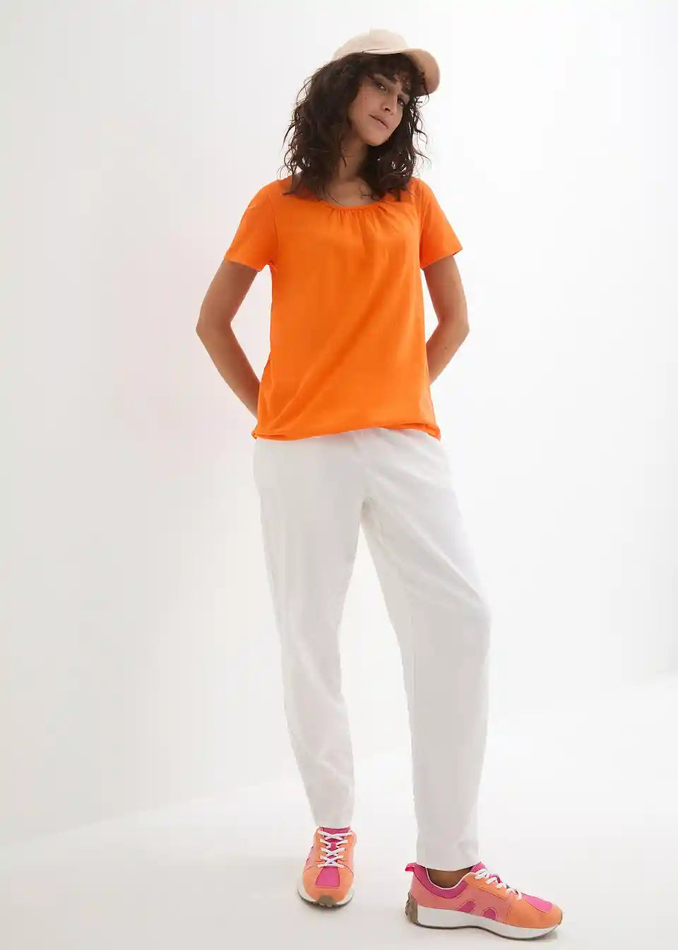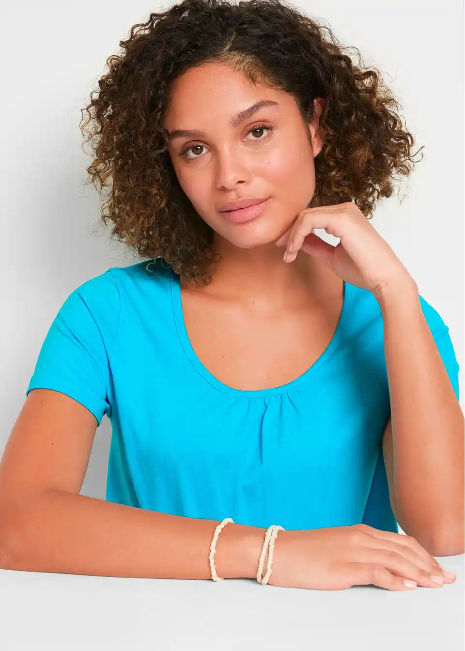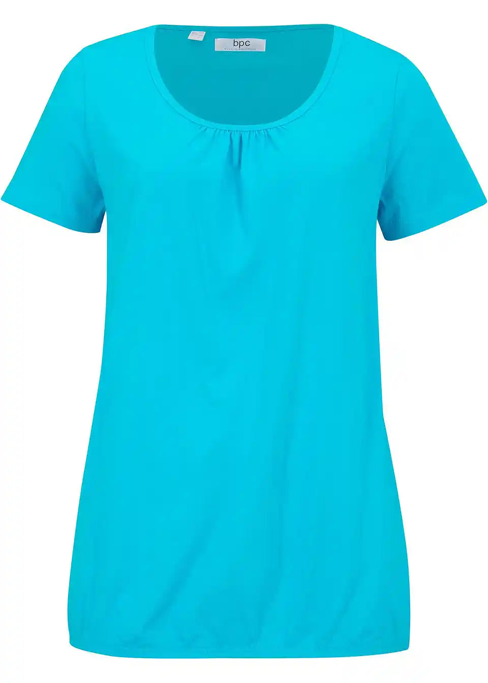 Čudovita majica z elastičnim gumijastim robom na robu in okroglim izrezom