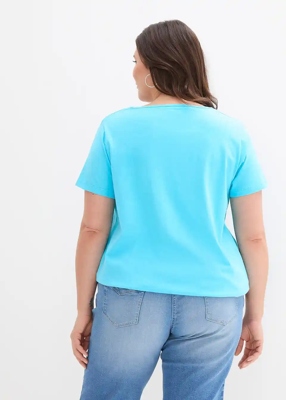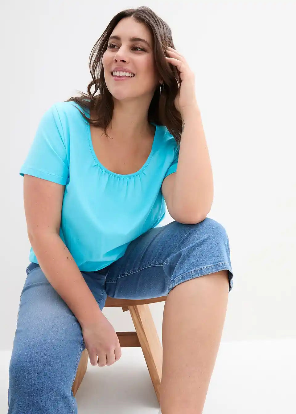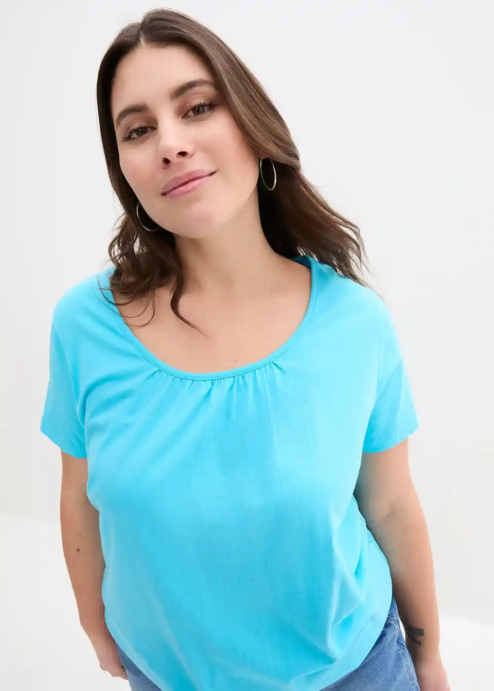 Lepa majica z elastičnim gumijastim robom na obrobi in okroglim vratnim izrezom