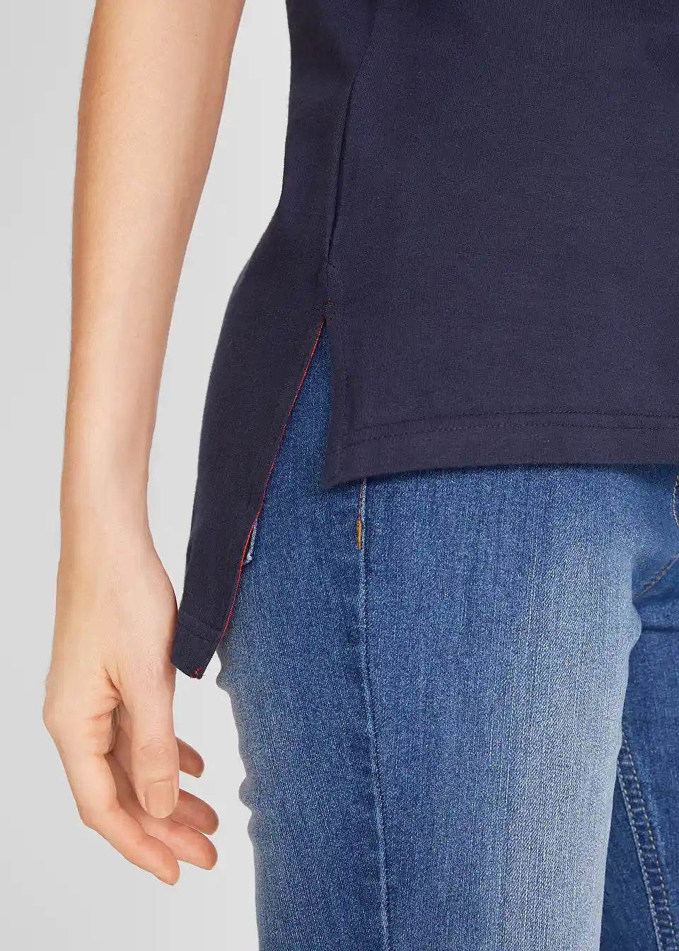 Osnovna bombažna majica, ki zaradi daljšega zadnjega roba lepo oblikuje silhueto
