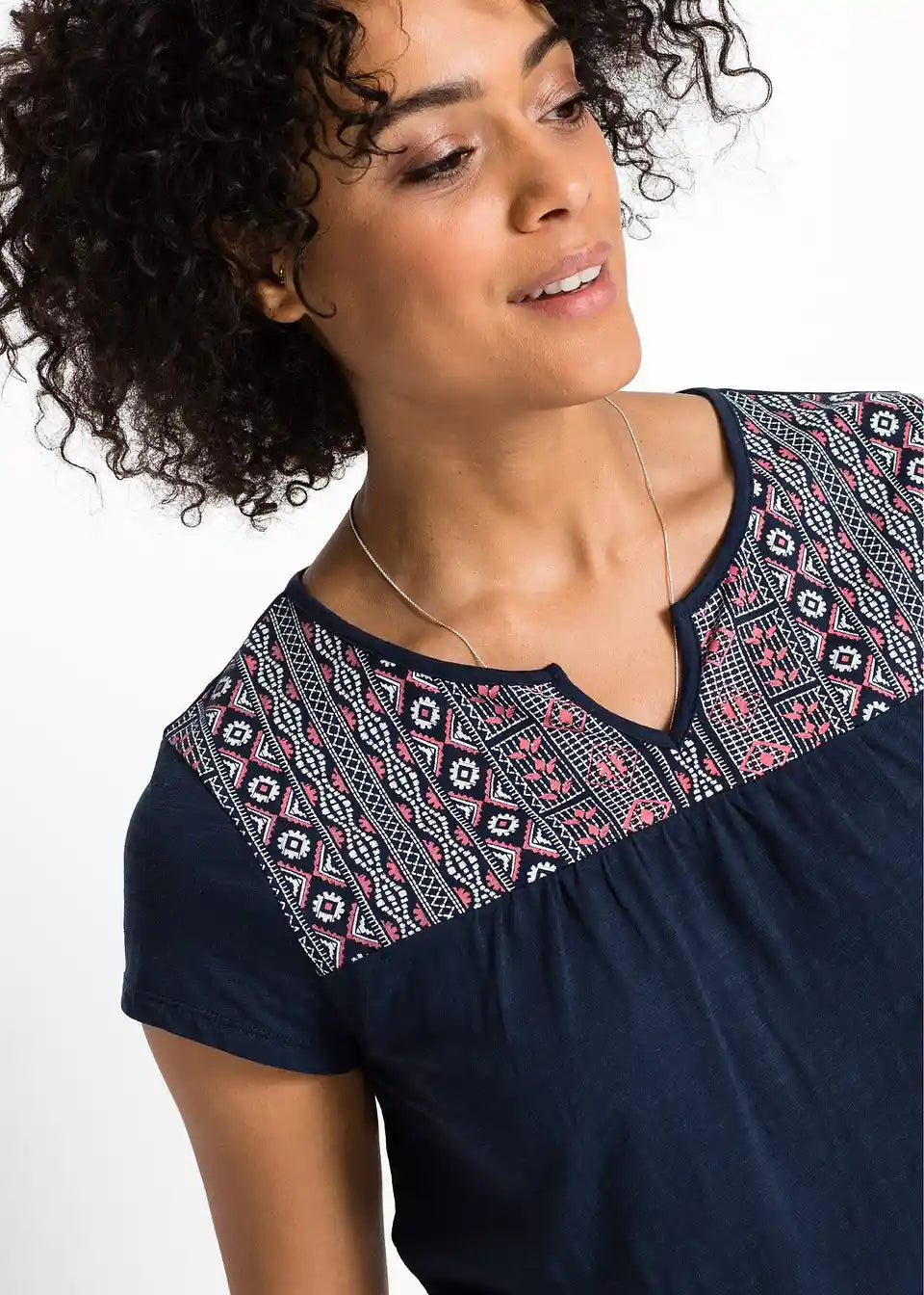 Čudovita majica s kratkimi krilnimi rokavi in etno potiskom