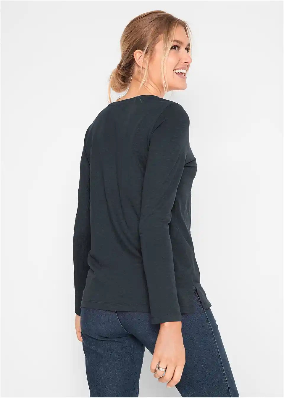 Majica z dolgimi rokavi, modnim potiskom sove in stranskimi razporki