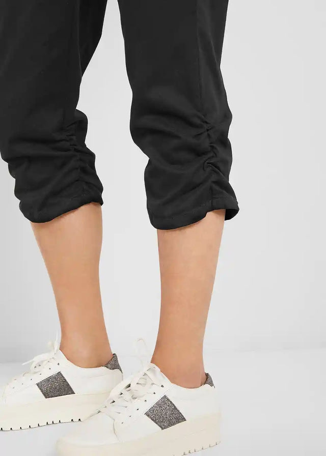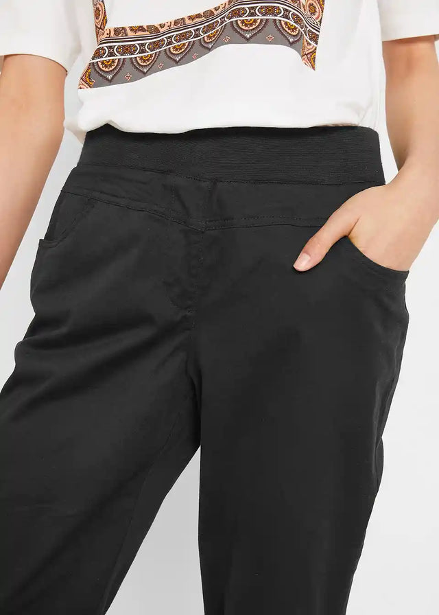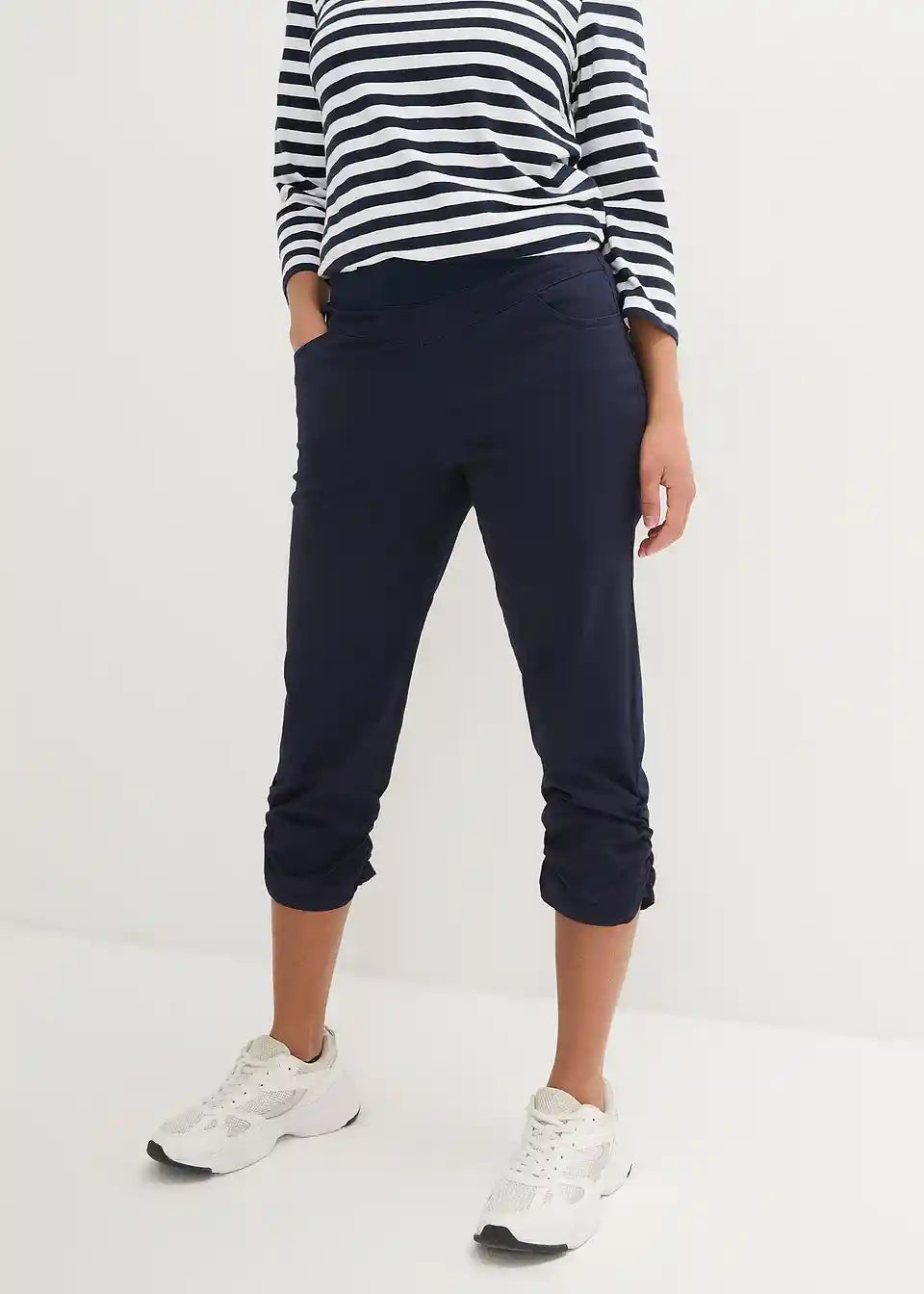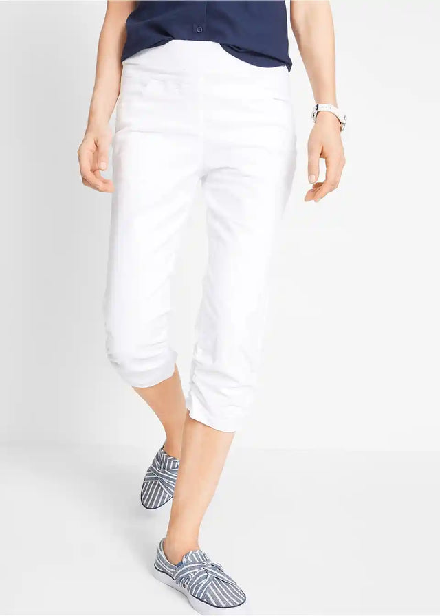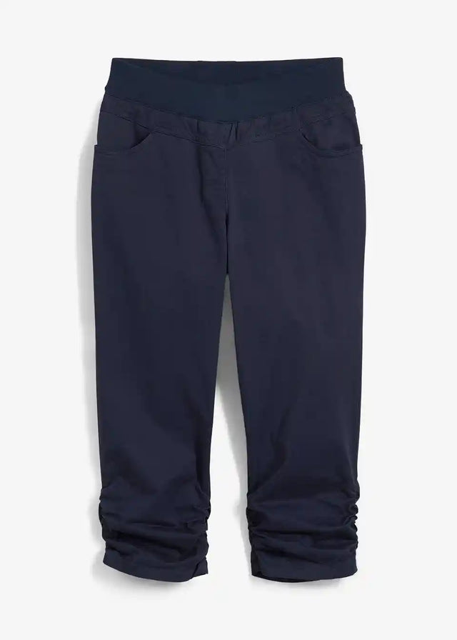 Capri hlače z dodatkom raztegljivosti in elastičnim rebrastim pasom