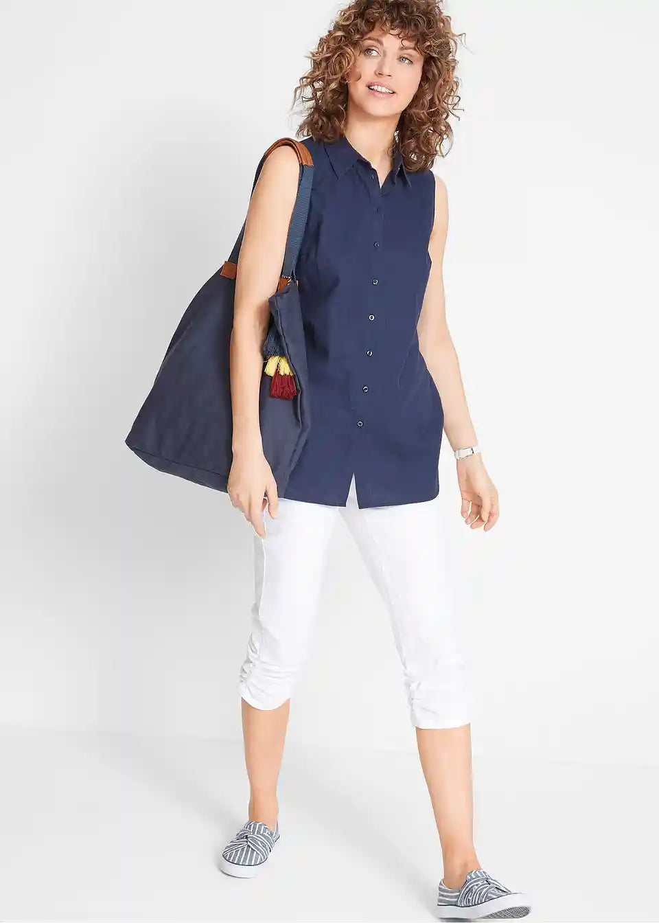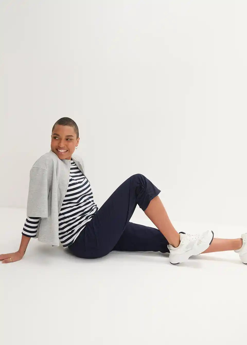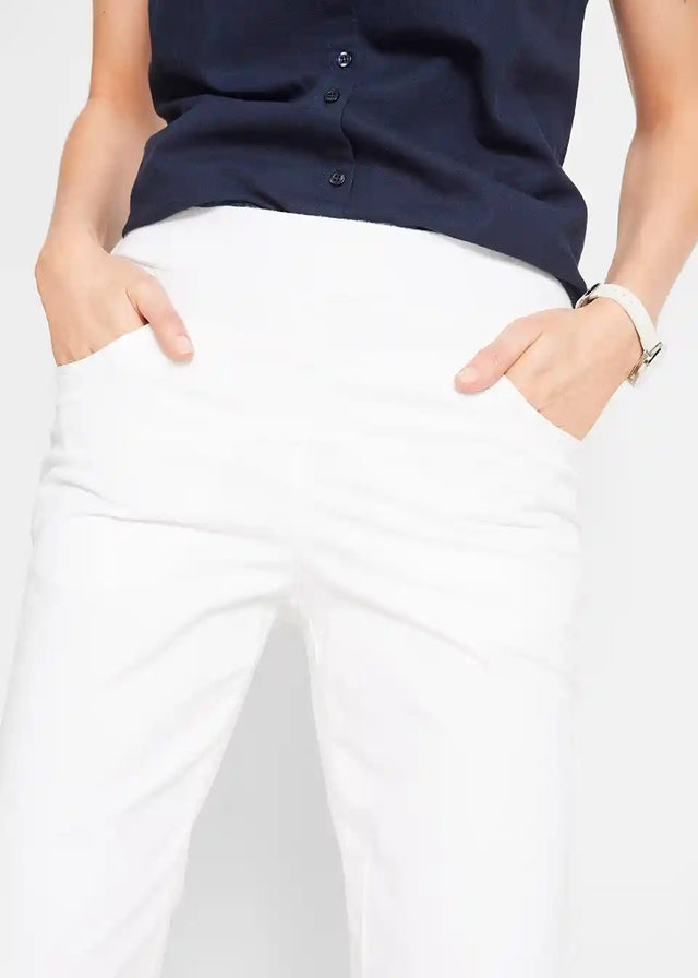 Capri hlače z dodatkom raztegljivosti in elastičnim rebrastim pasom