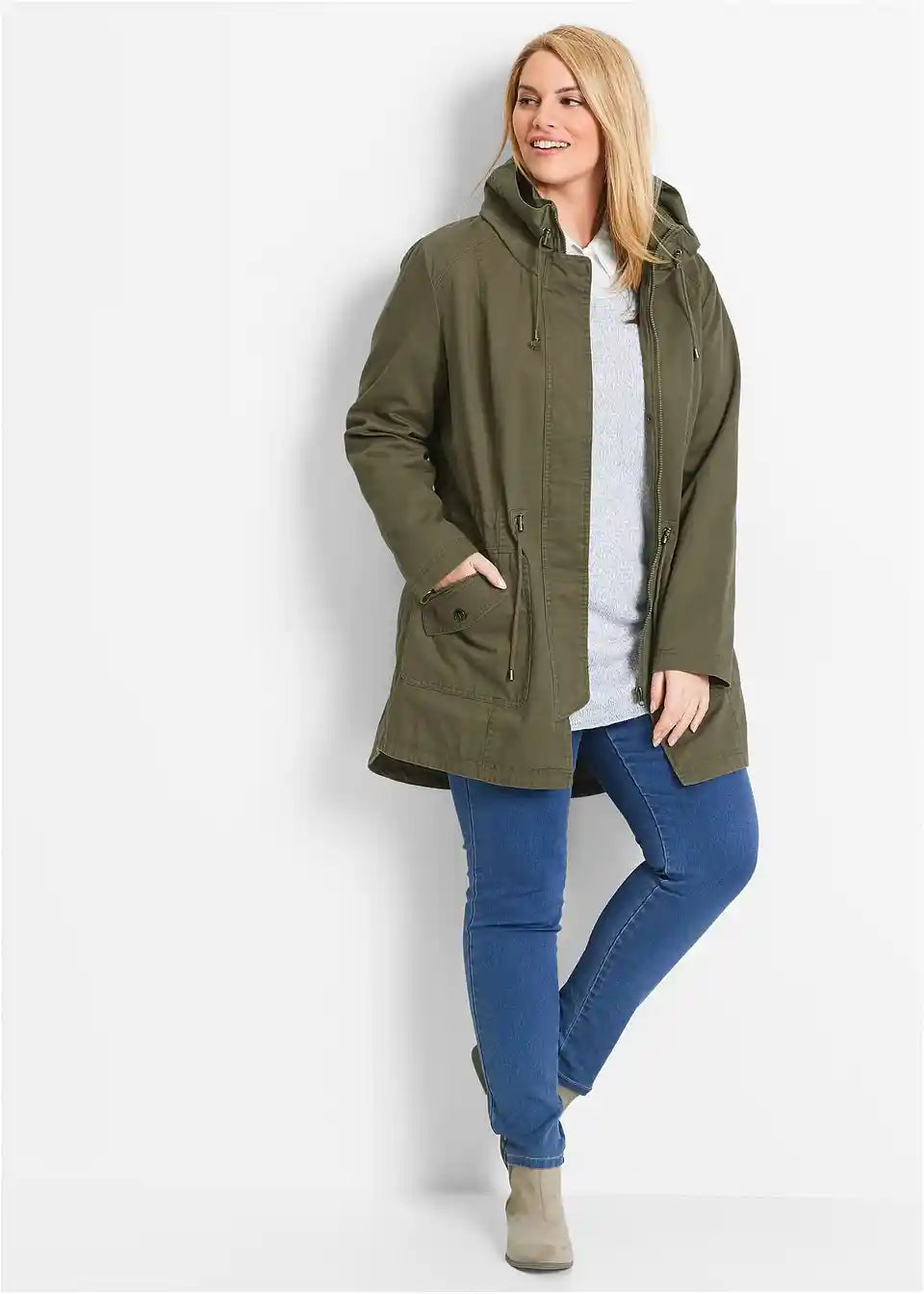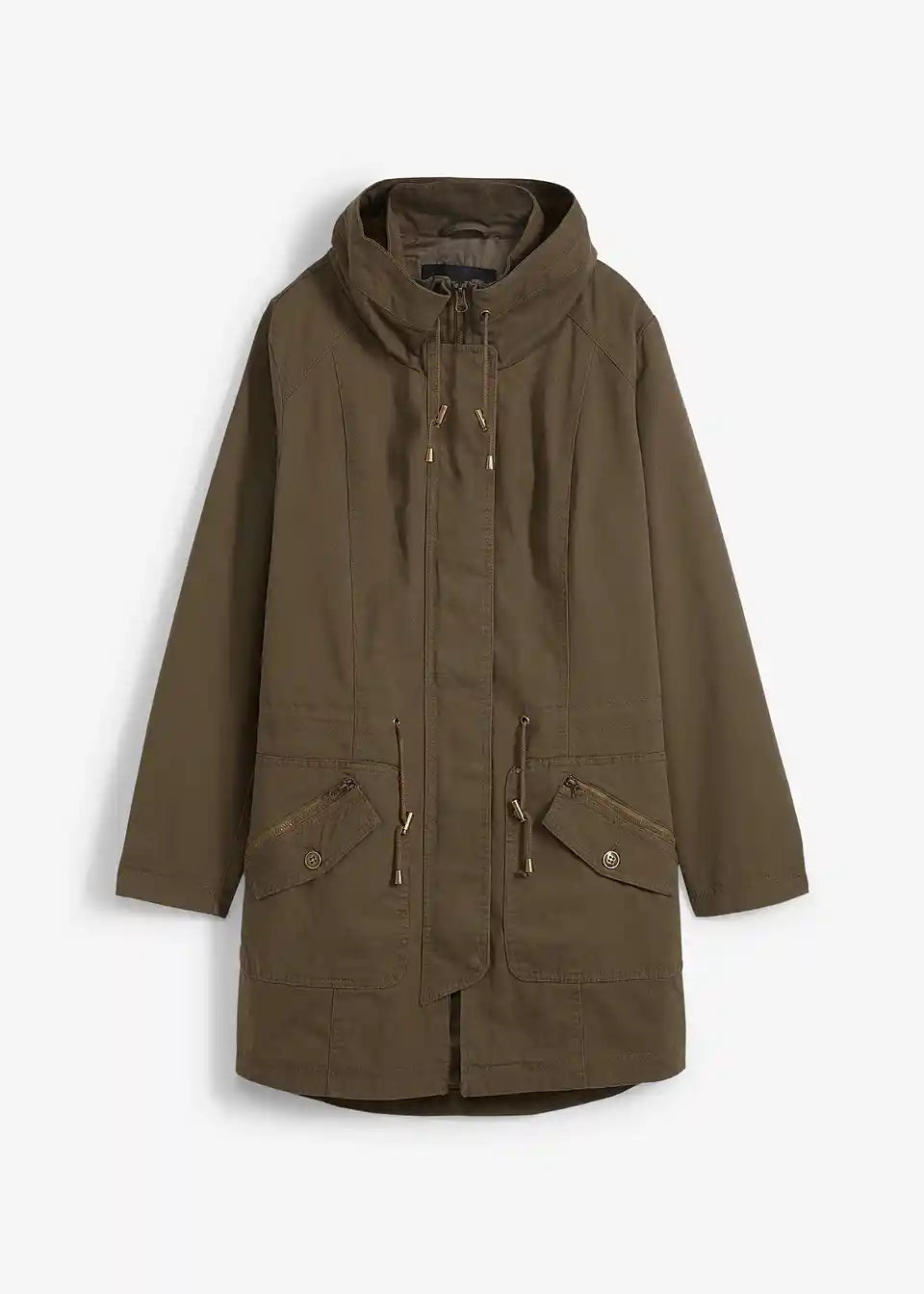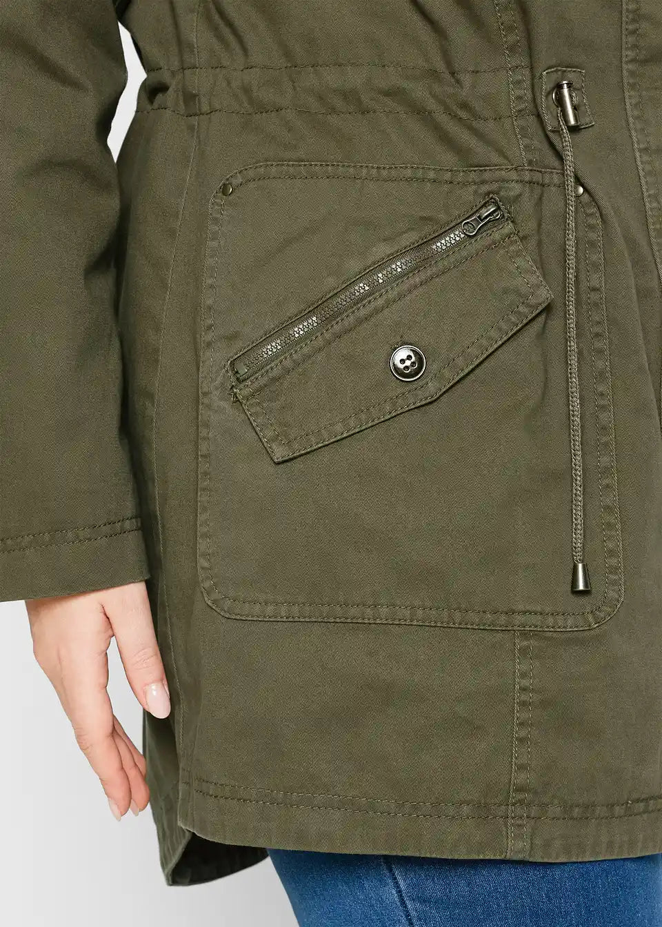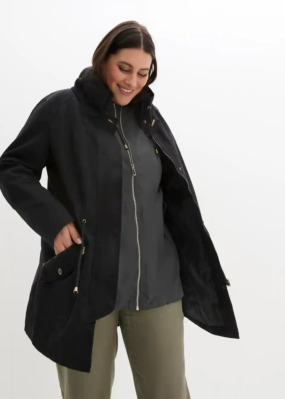 Ta lahkotna jakna znamke bpc je praktičen in vsestranski kos za prehodne letne čase. Opremljena je s številnimi funkcionalnimi podrobnostmi: spredaj se jakna zapira z zadrgo. Visok ovratnik in širina v pasu sta prilagodljiva z vrvico. Veliki našiti žepi z zadrgo so praktični in modni hkrati.
