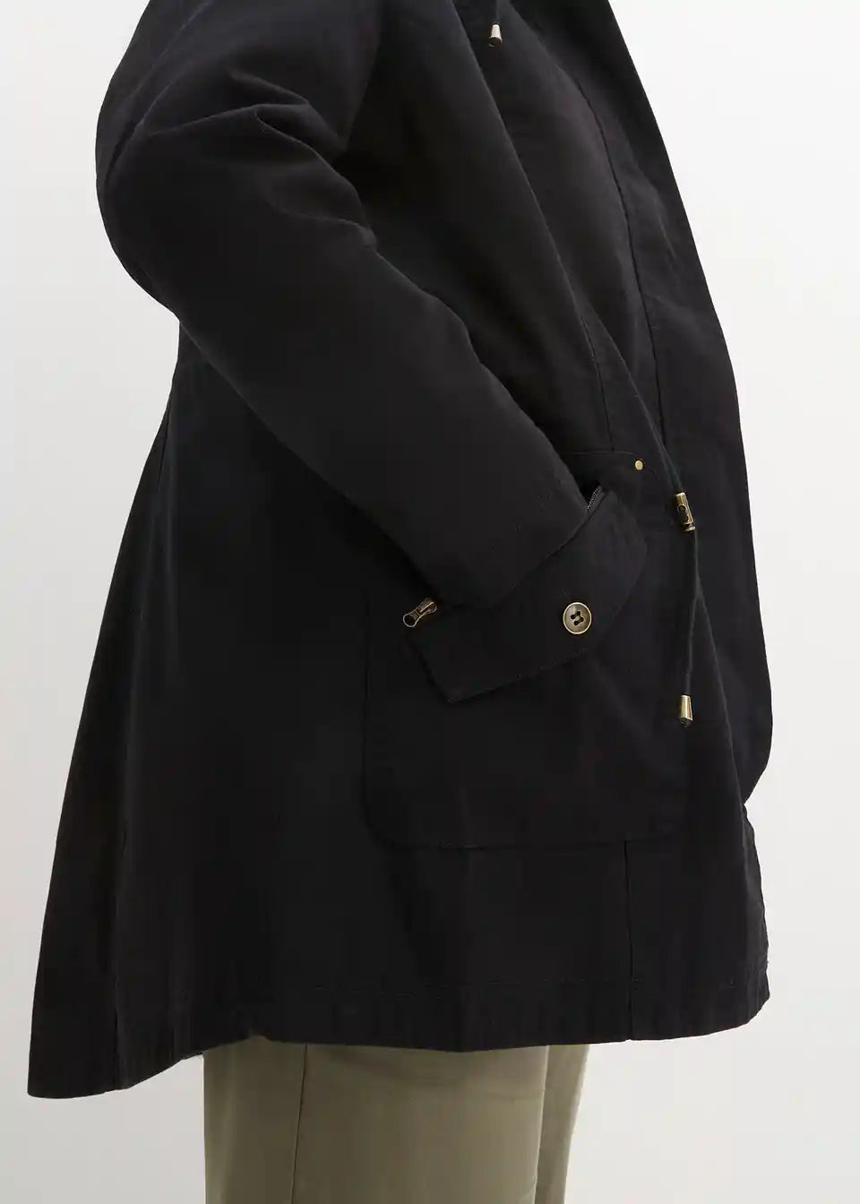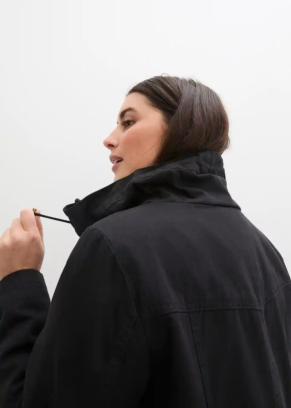 Bombažna kratka parka s pokončnim ovratnikom v tajliranem kroju