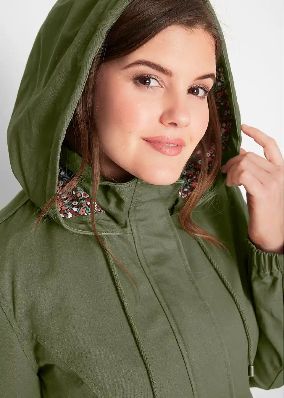 zgornji material: 100% bombaž, podloga: 100% poliester (recikliran), podloga rokavov: 100% poliester (recikliran), podloga kapuce: 100% bombaž (ekološki)