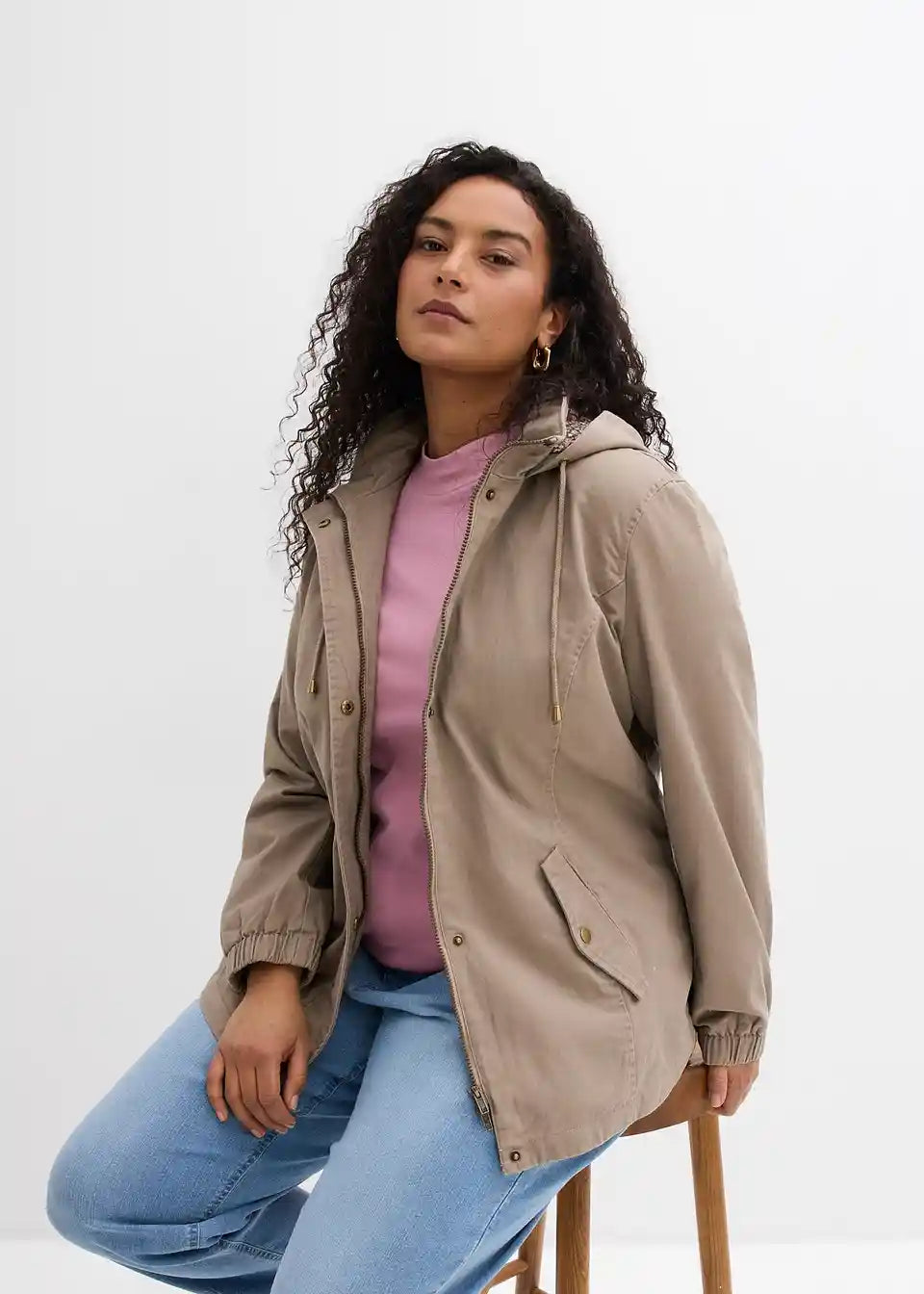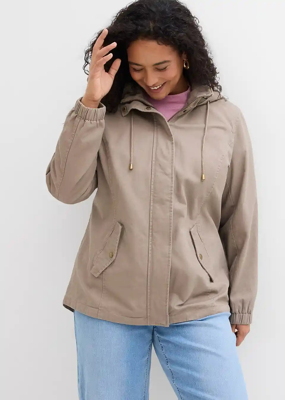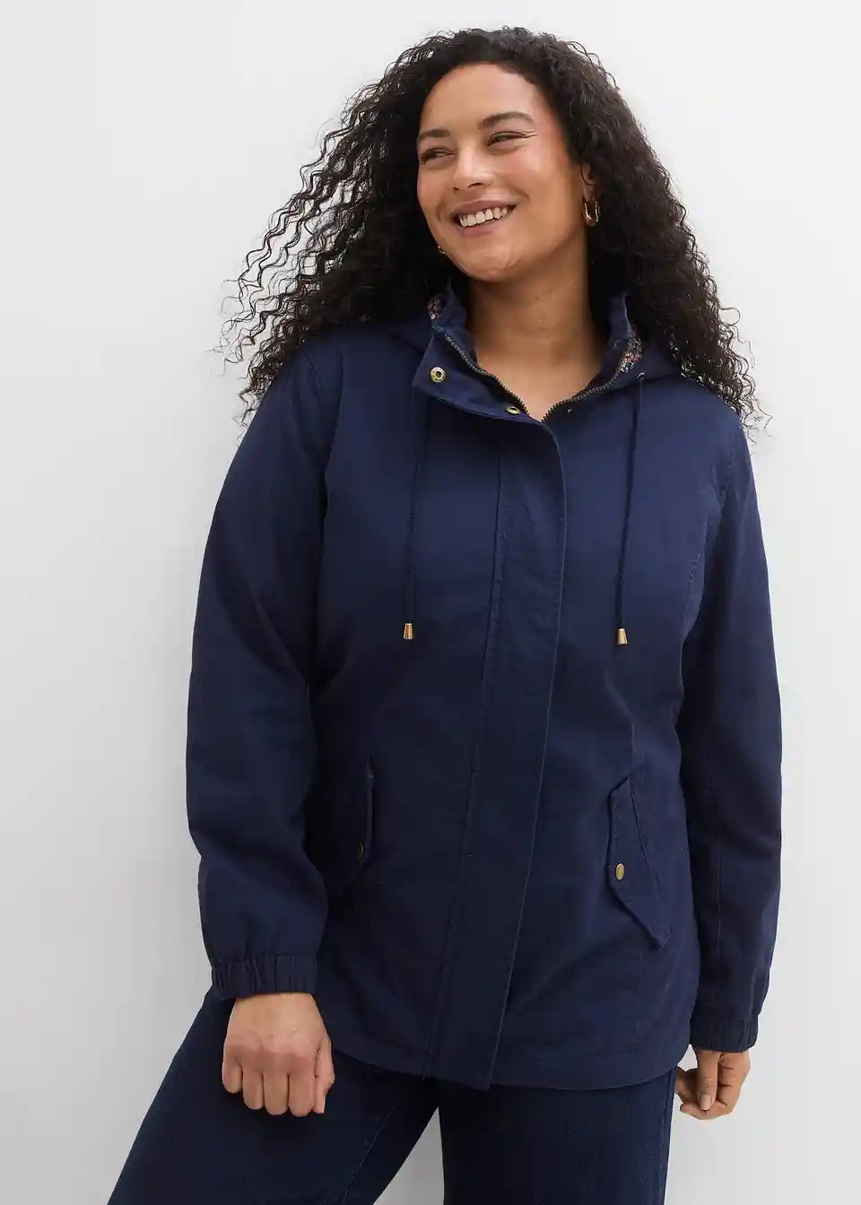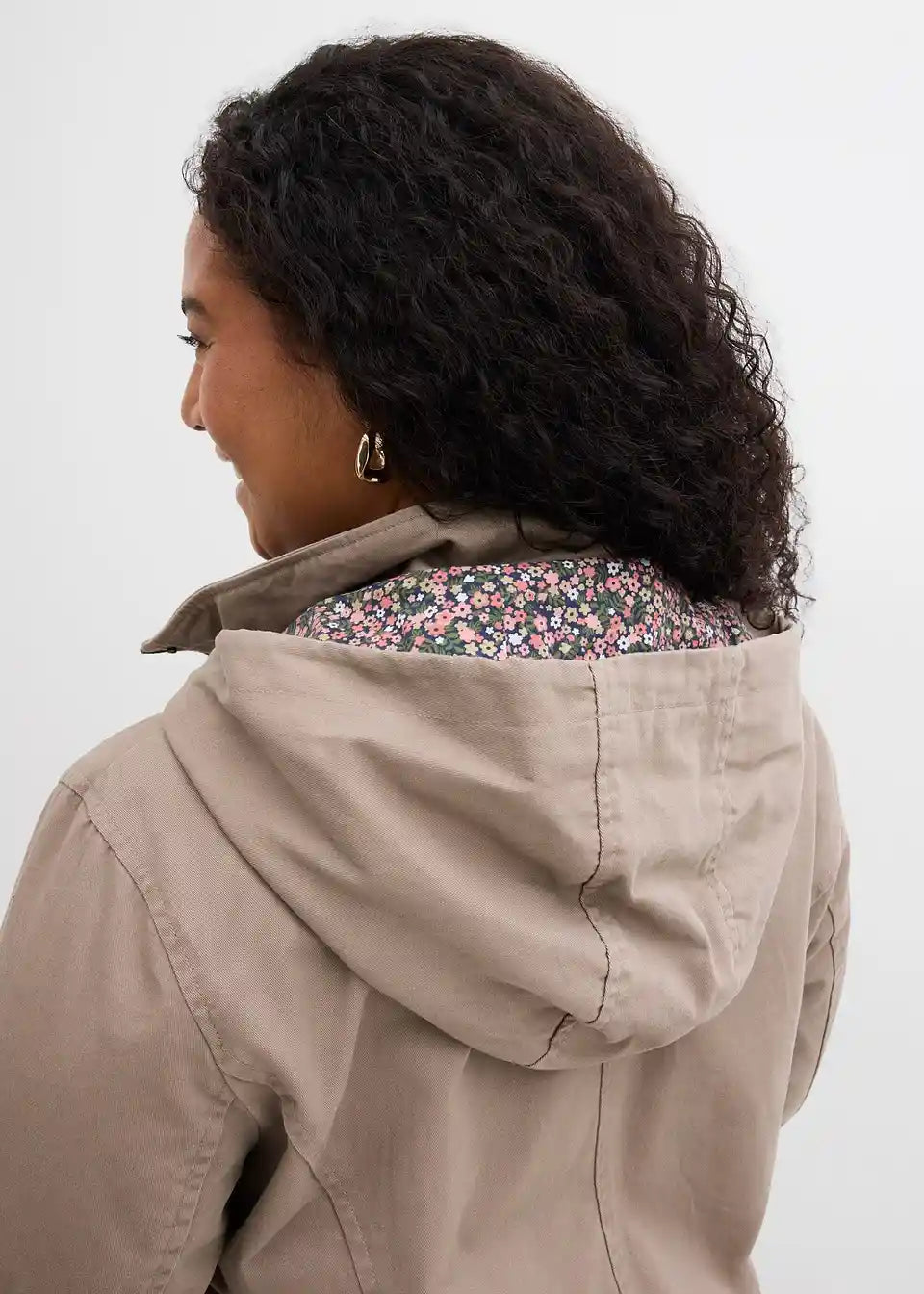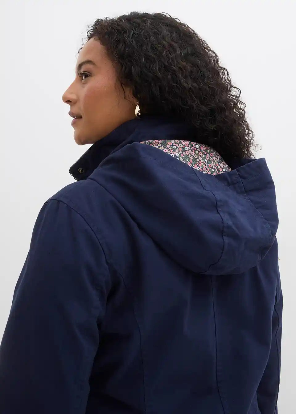 zgornji material: 100% bombaž, podloga: 100% poliester (recikliran), podloga rokavov: 100% poliester, podloga kapuce: 100% bombaž