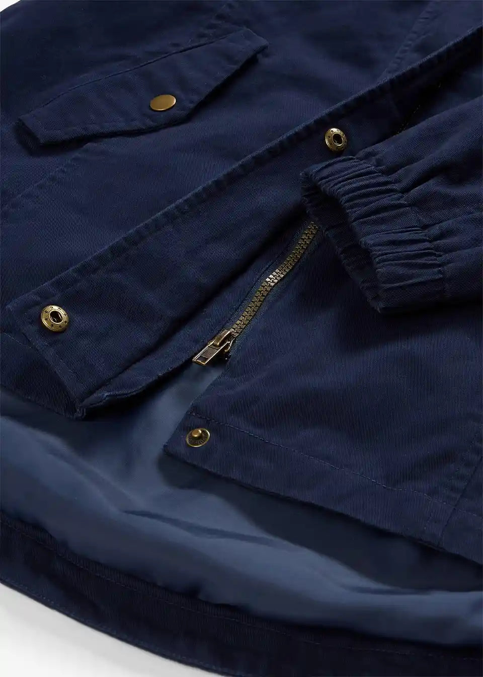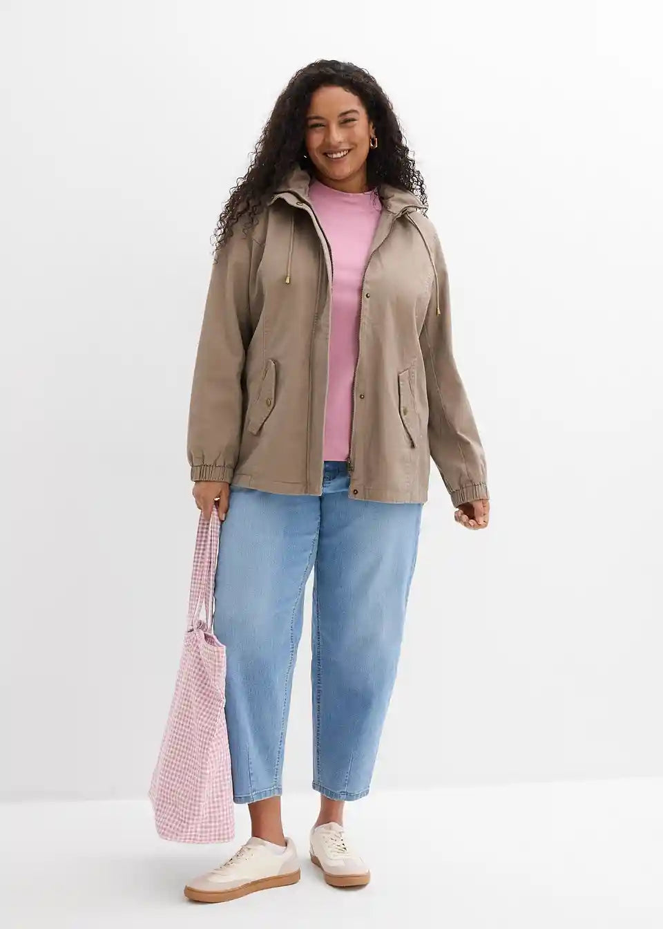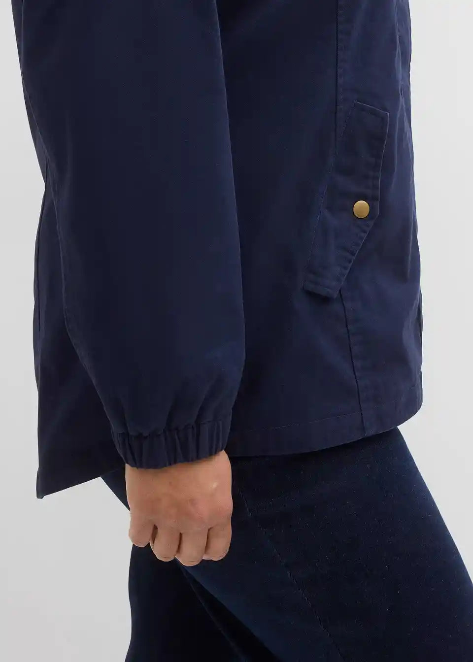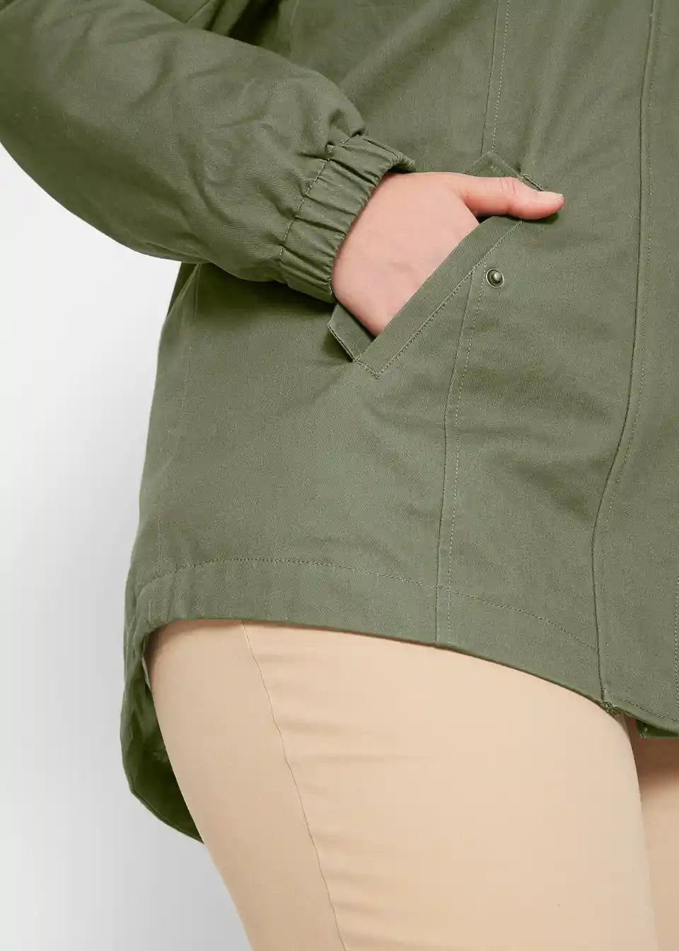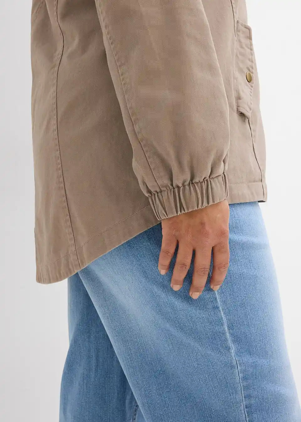 zgornji material: 100% bombaž, podloga: 100% poliester (recikliran), podloga rokavov: 100% poliester, podloga kapuce: 100% bombaž