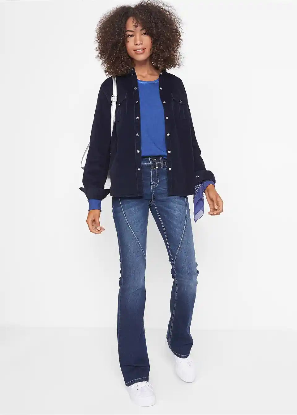 Boot-cut kavbojke s srednje visokim pasom in stretch materialom
