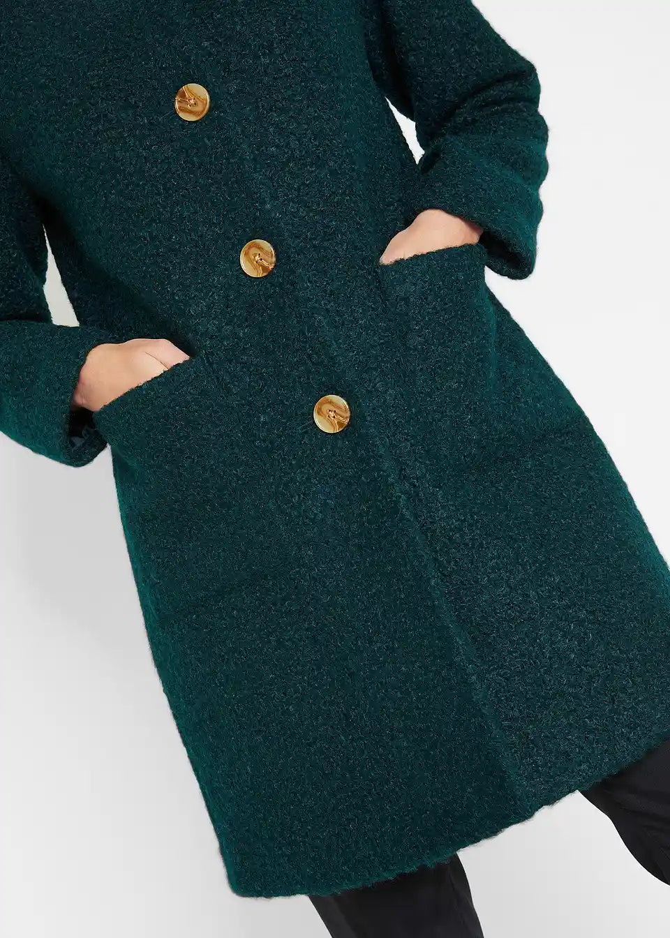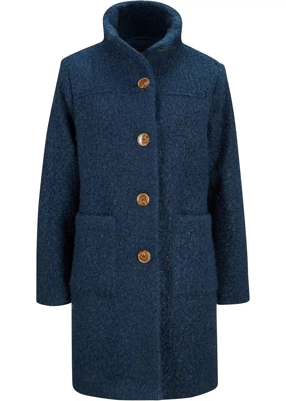 Strukturiran plašč z gumbi in stoječim ovratnikom, z A-linijo, ki poudarja postavo