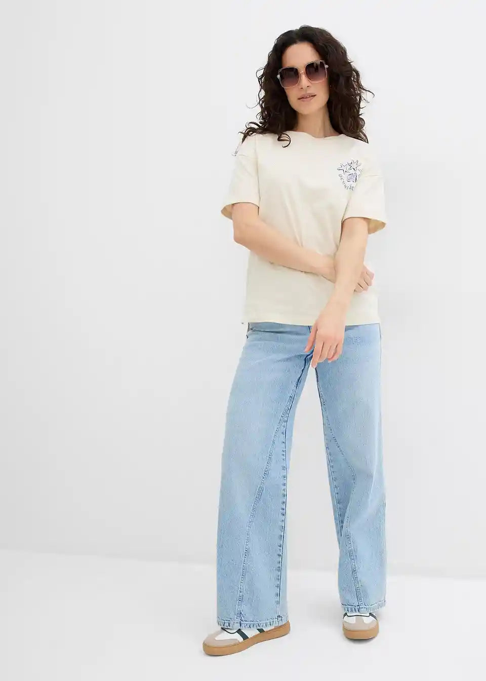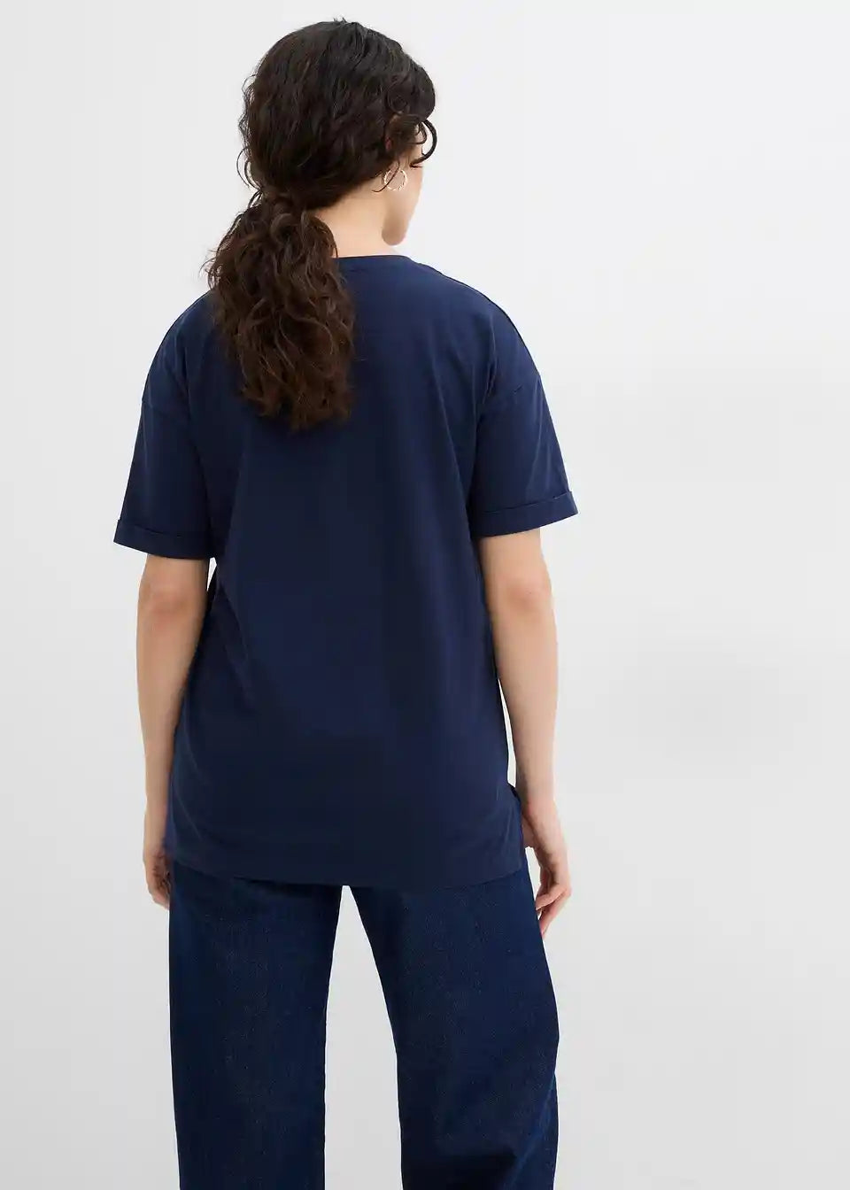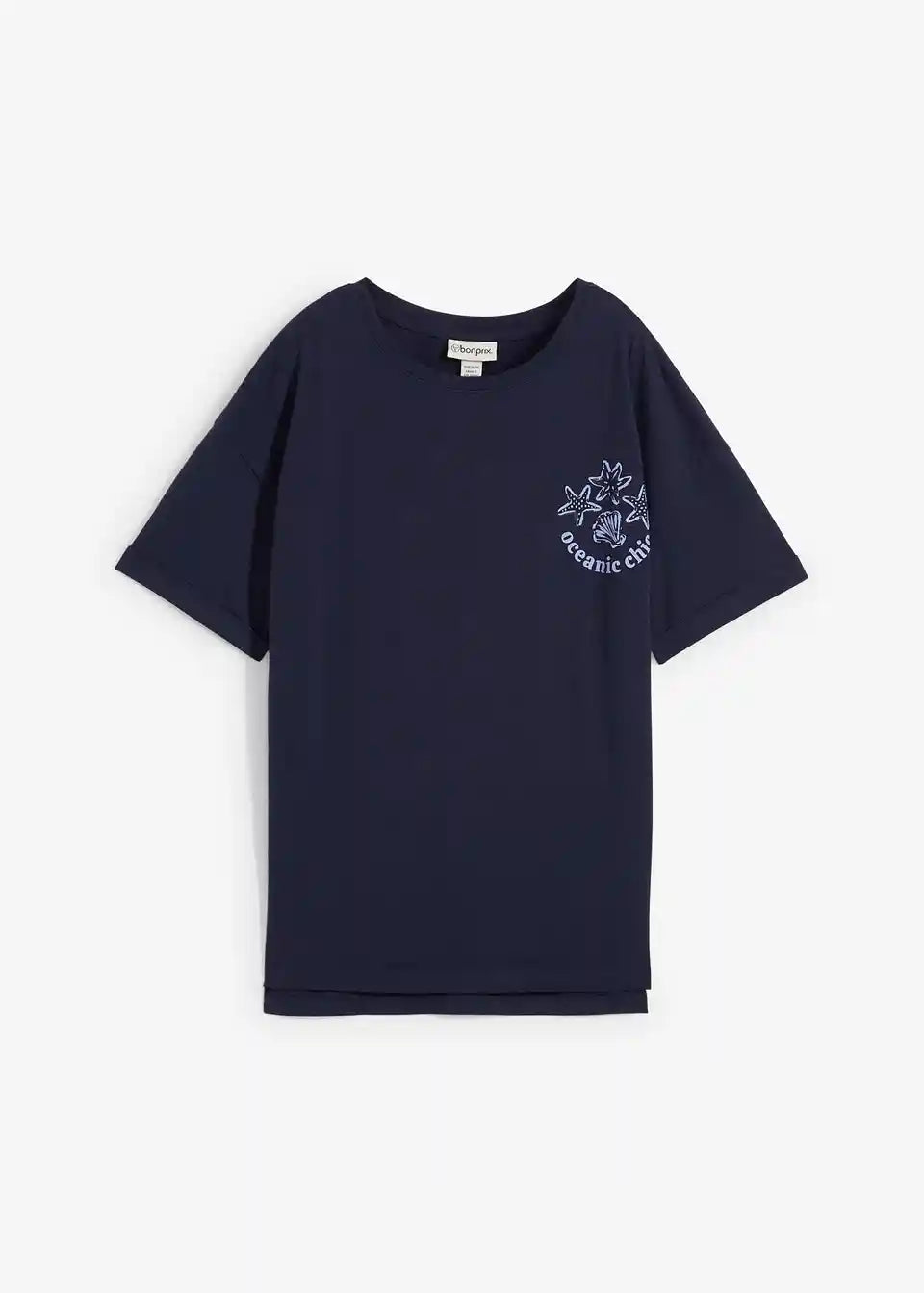 Ohlapno krojena majica s stranskimi razporki in podaljšanim hrbtnim delom