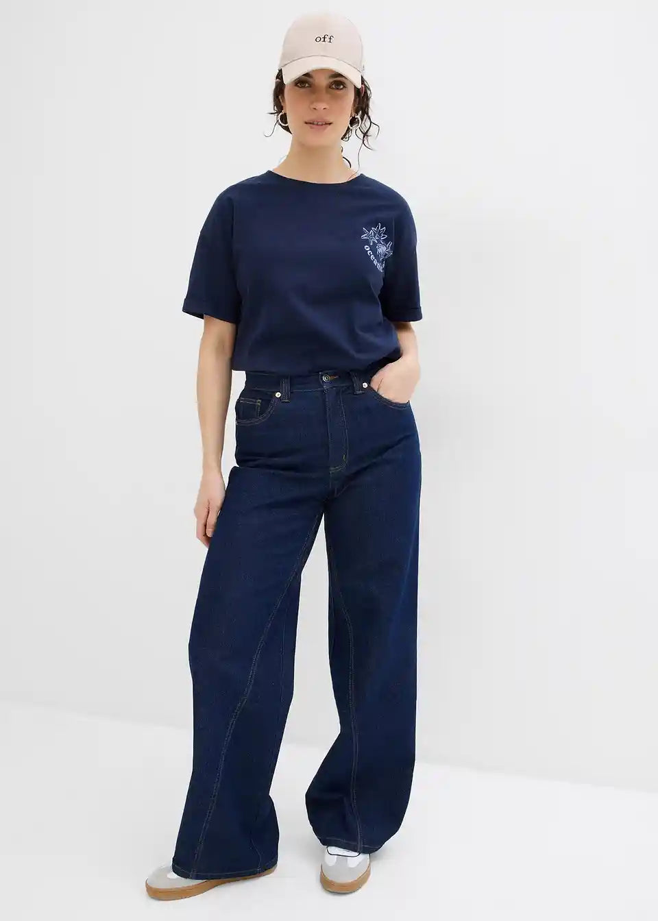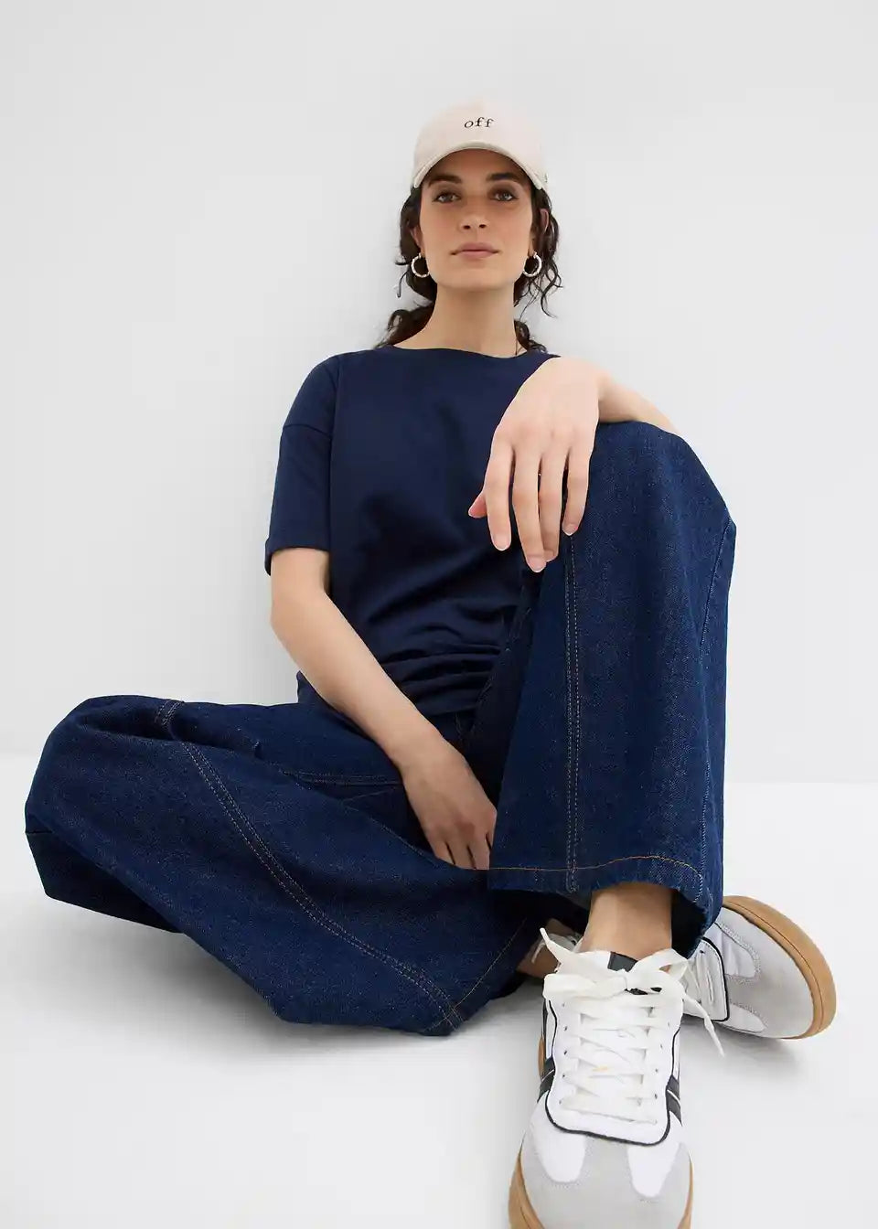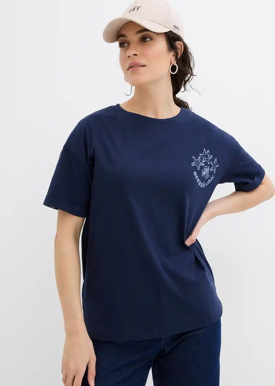 Ohlapno krojena majica s stranskimi razporki in podaljšanim hrbtnim delom