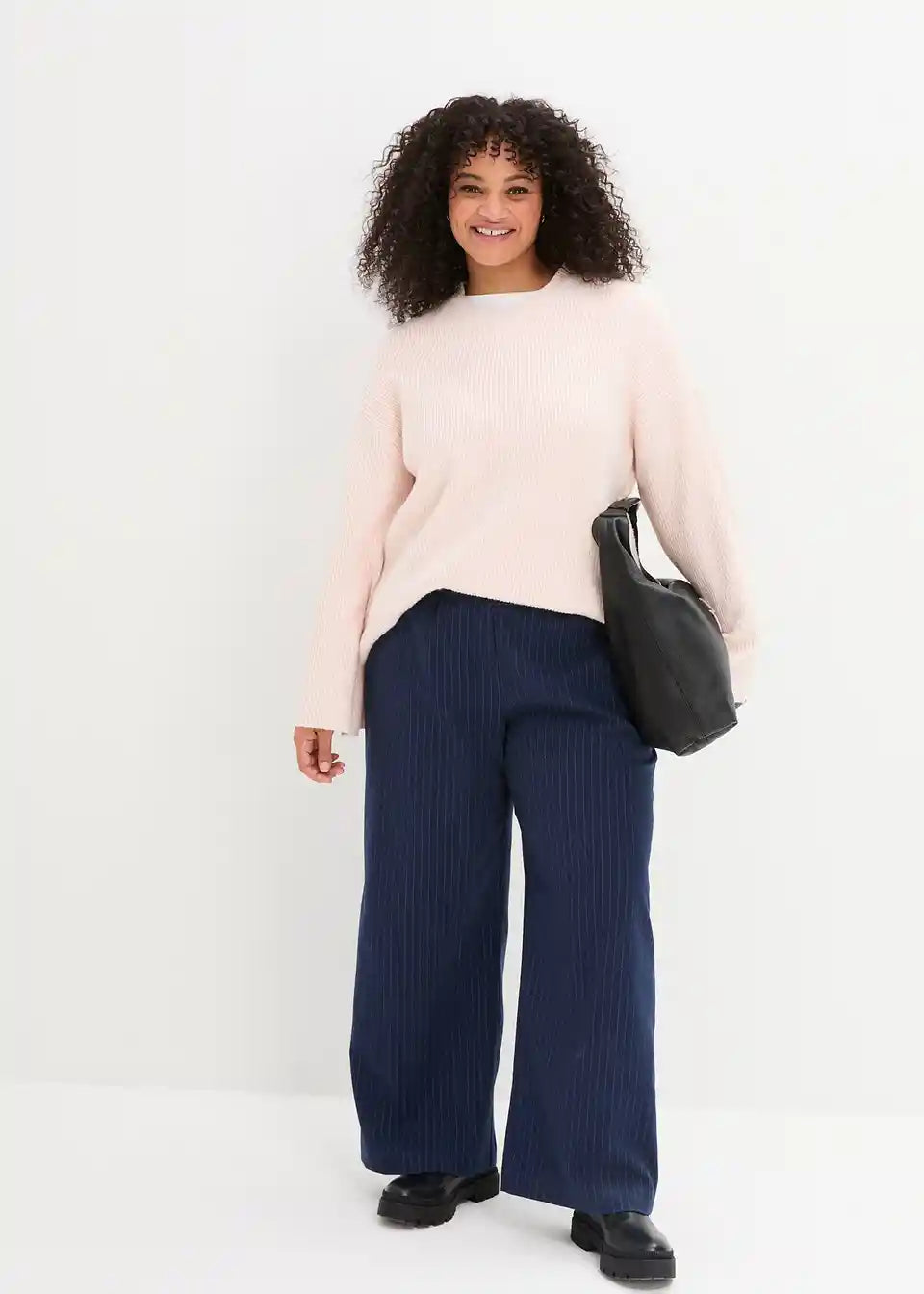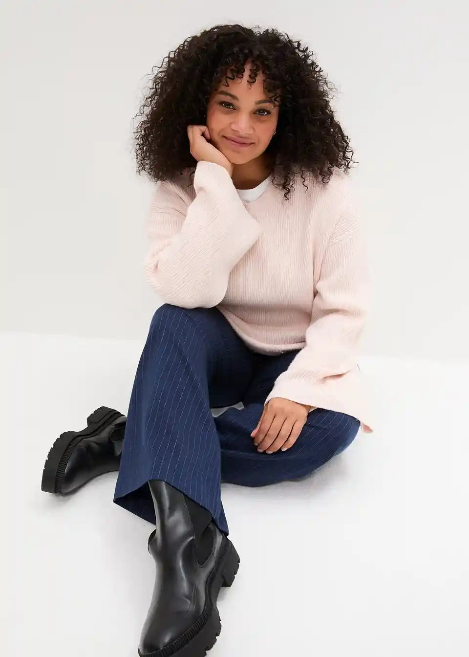 Figuri laska Boxy-pulover iz fine rebraste pletenine