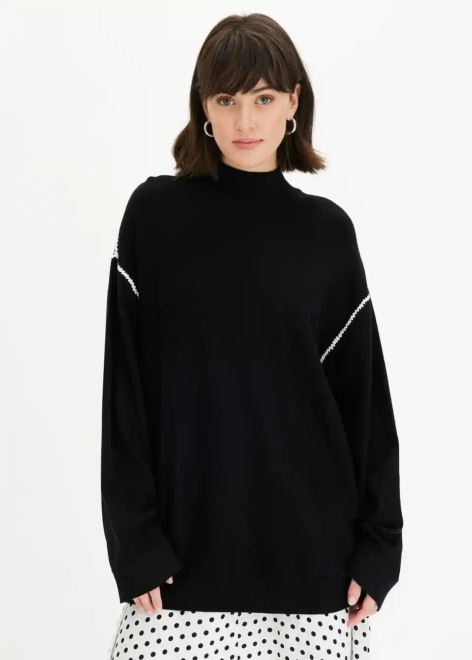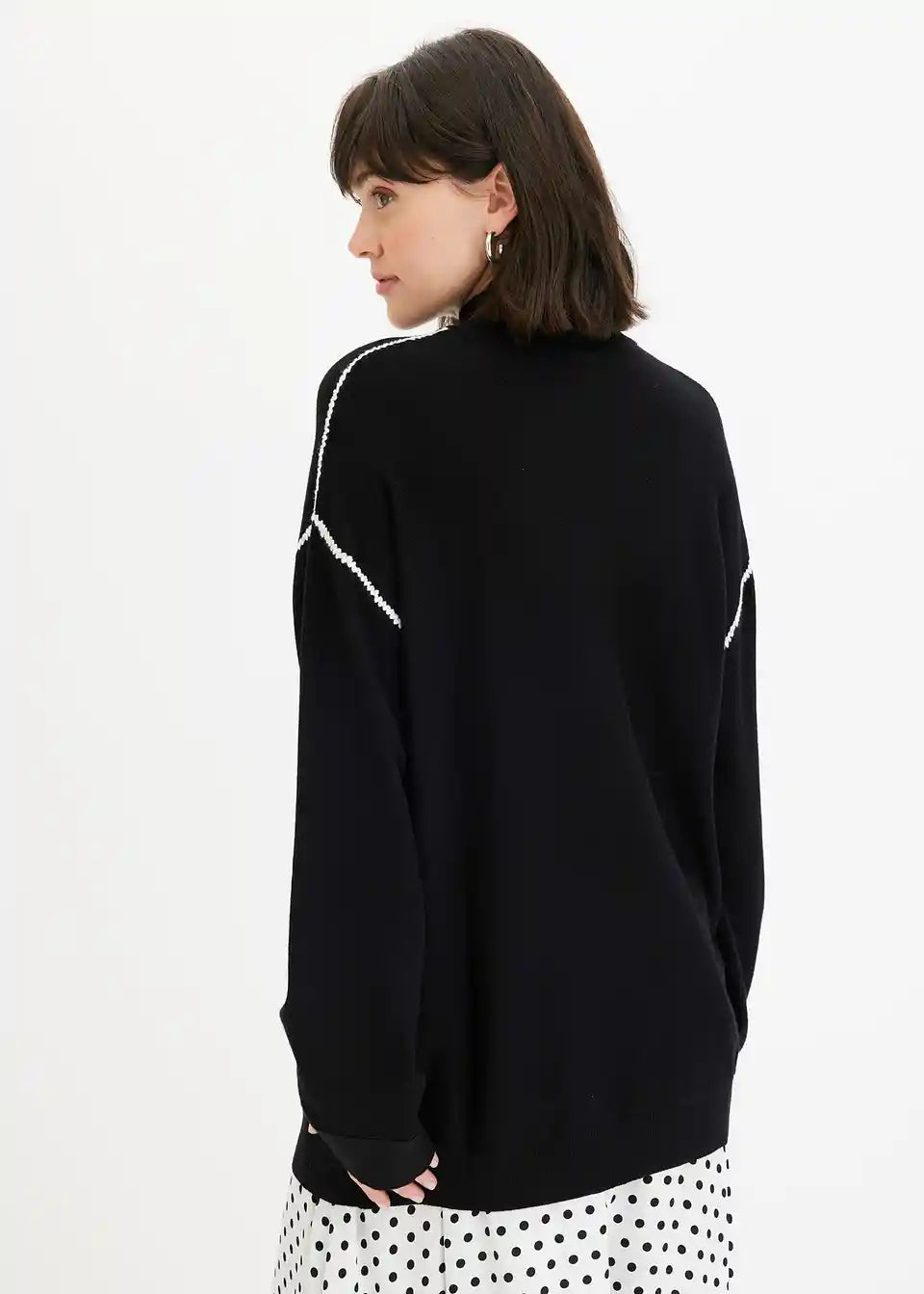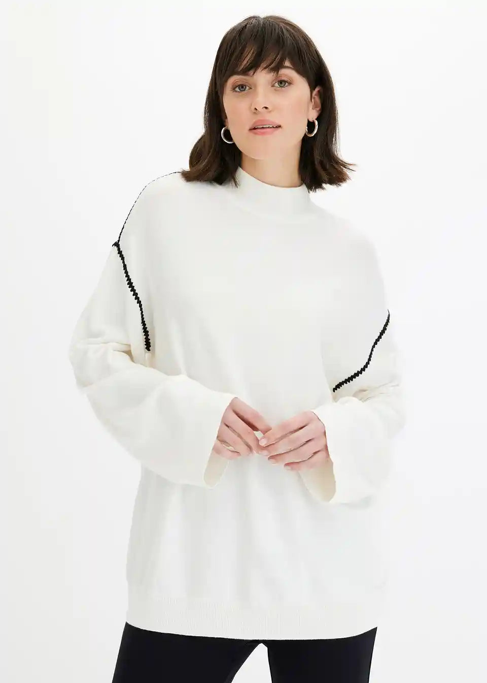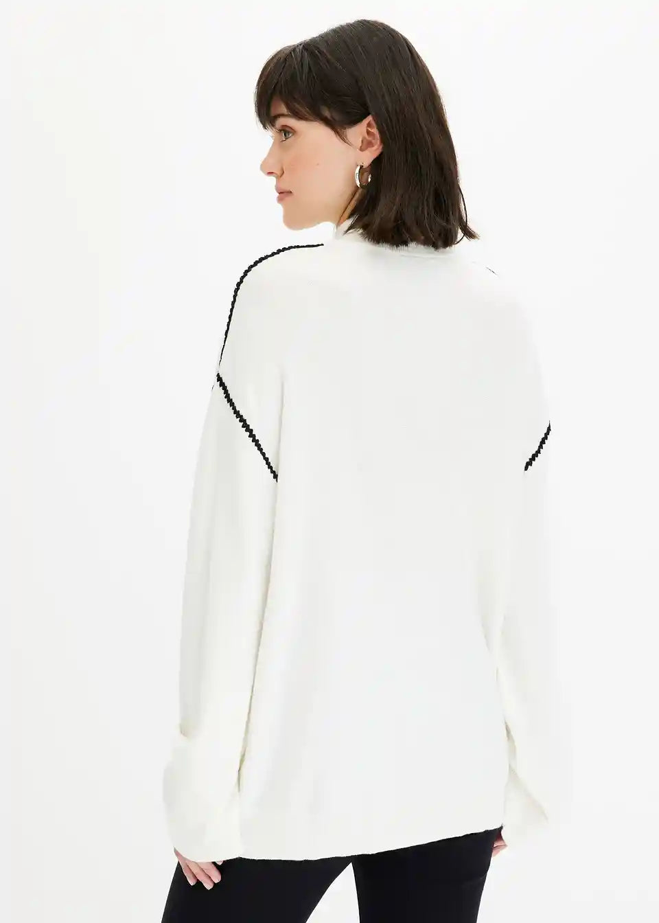 Pulover v kvadratnem kroju z okrasnimi šivi iz viskozne mešanice